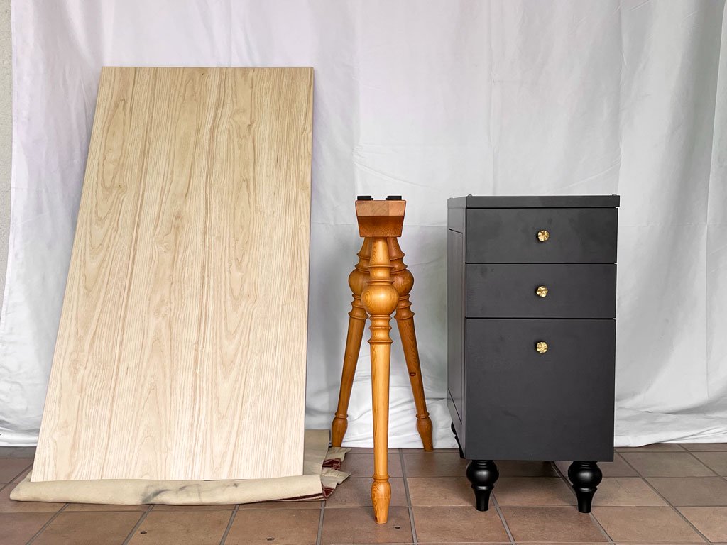 リメイクデスク 3ビクトリアンレッグ&木製キャビネット&天板 3点セット