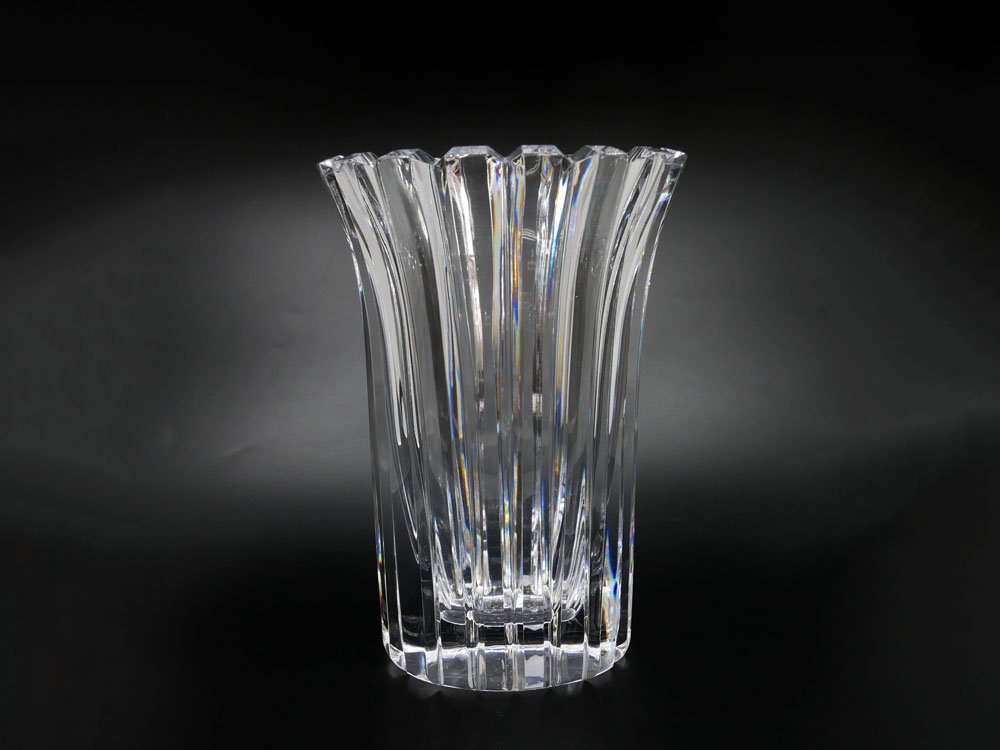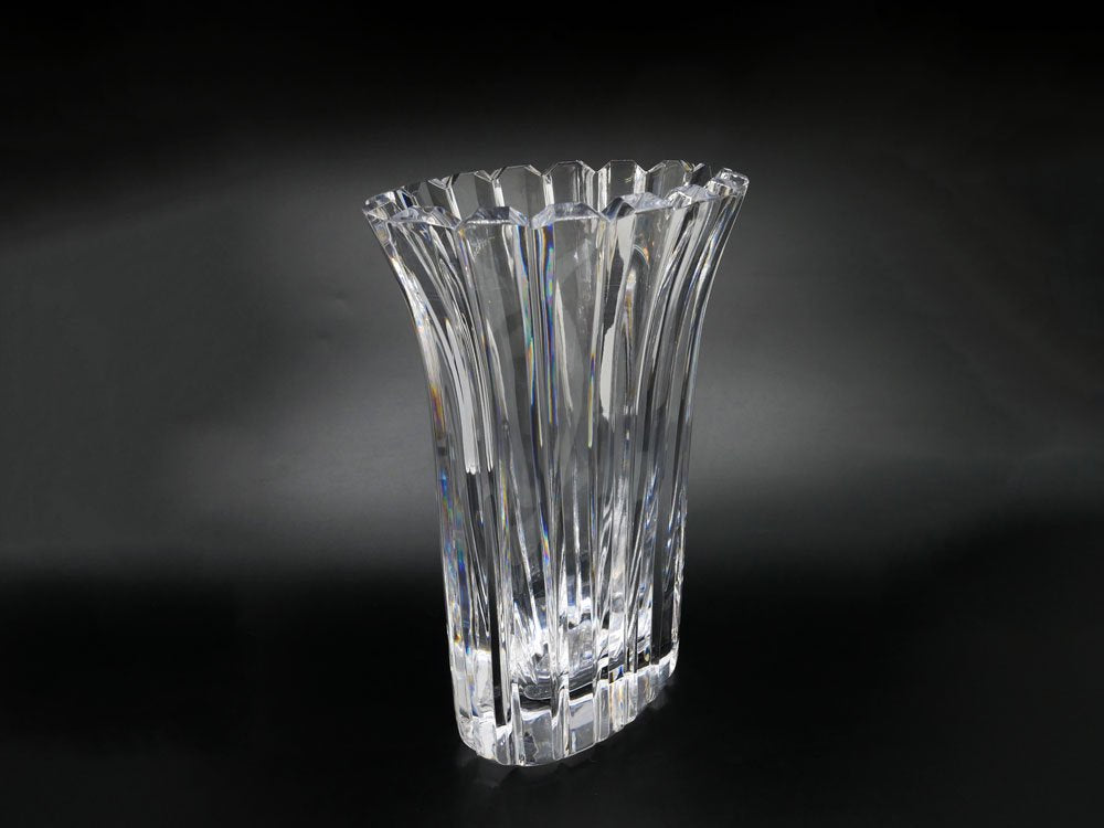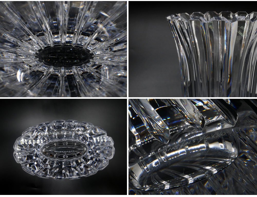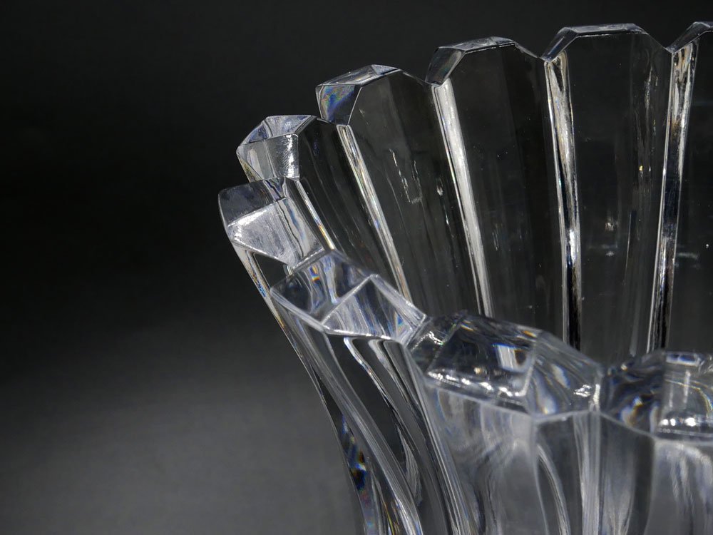 大胆なカットから生まれる光の陰影、クリスタルの輝きが美しいフラワーベース。