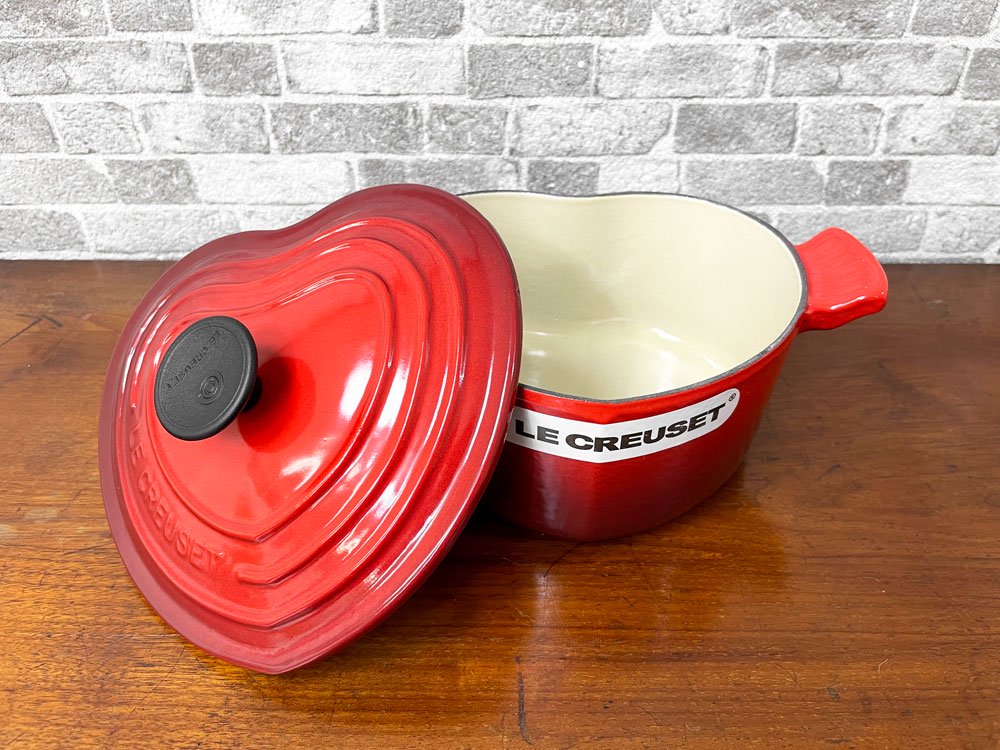 ルクルーゼ LE CREUSET ココットダムール COCOTTE D'AMOUR 両手鍋 ハート型 鋳物 チェリーレッド 1.9L フランス製 未使用品 ●