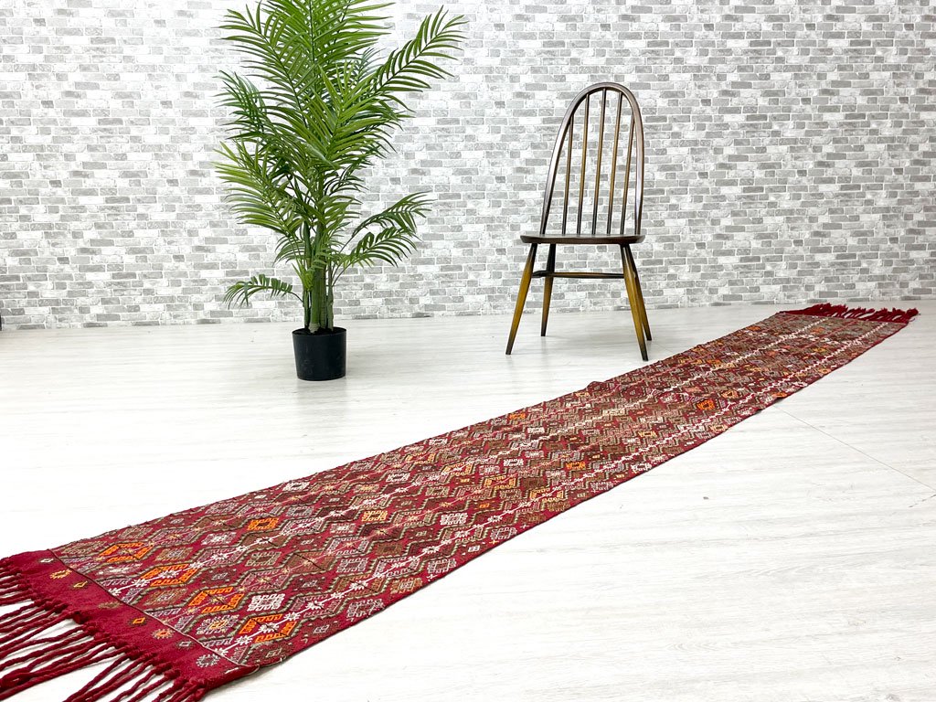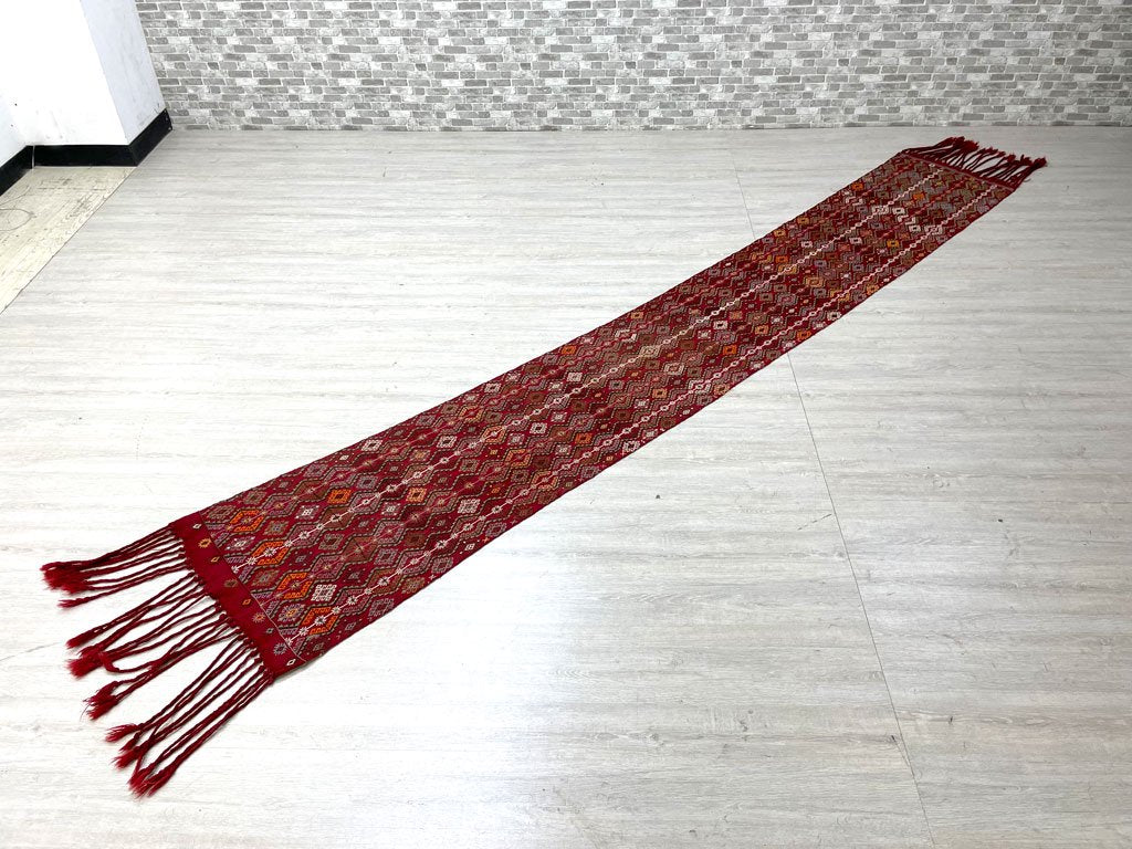ビンテージ vintage トルコ製 手織り ラグ ランナー キリム柄 廊下 ロングタイプ フリンジ付き 320 × 50 ●