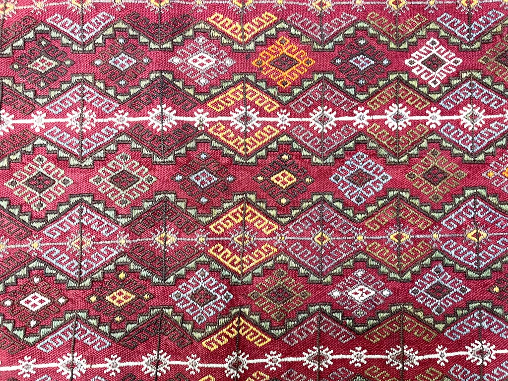 草木や大地、太陽や水といった自然の恵みをモチーフに、日々の暮らしの安全・安心を願う気持ちが織り込まれたキリム。今回は、幾何学模様をベースにしながらも草花を連想させる心温まるレリーフが描かれております。