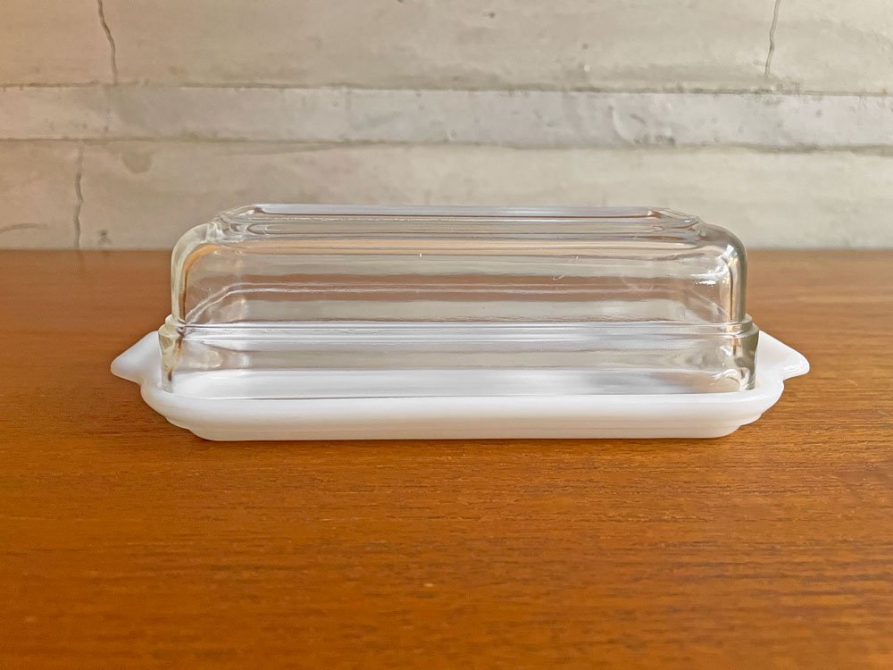 ファイヤーキング FIRE KING バターディッシュ バターケース ホワイト ミルクガラス OVEN Fire-Kig WARE 1950’s ビンテージ♪