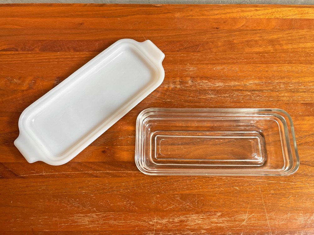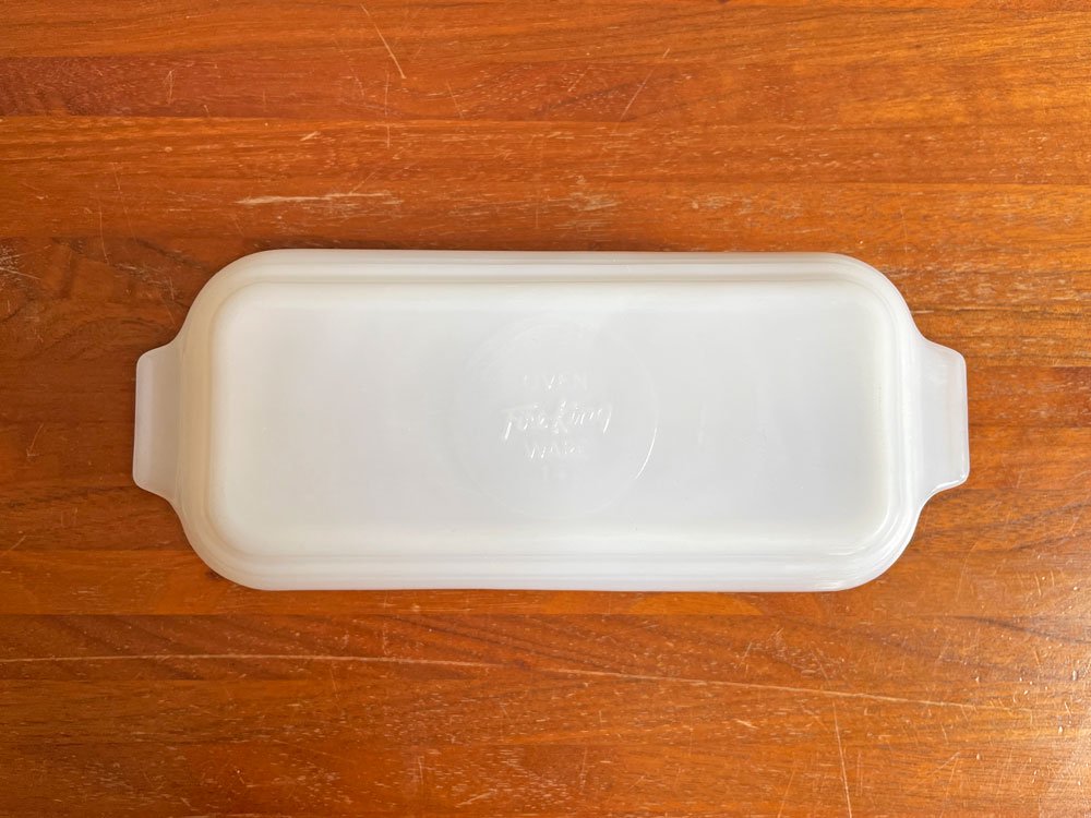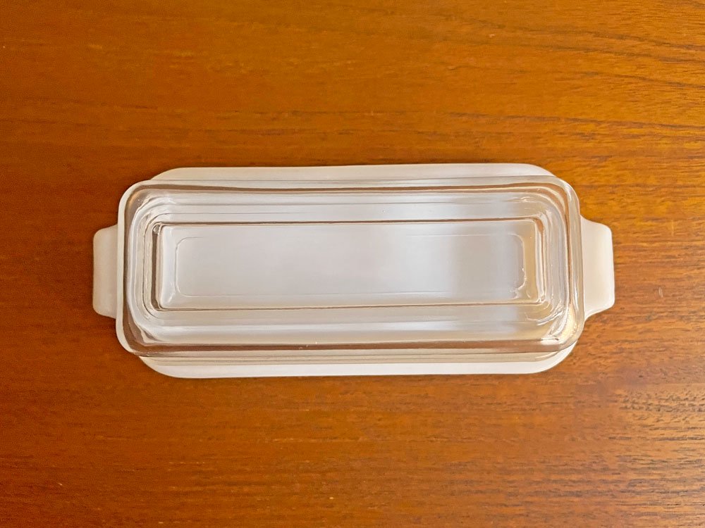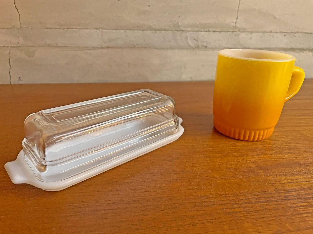ミルクガラスの柔和さが楽しいファイヤーキングのバターディッシュ、是非いかがでしょうか。