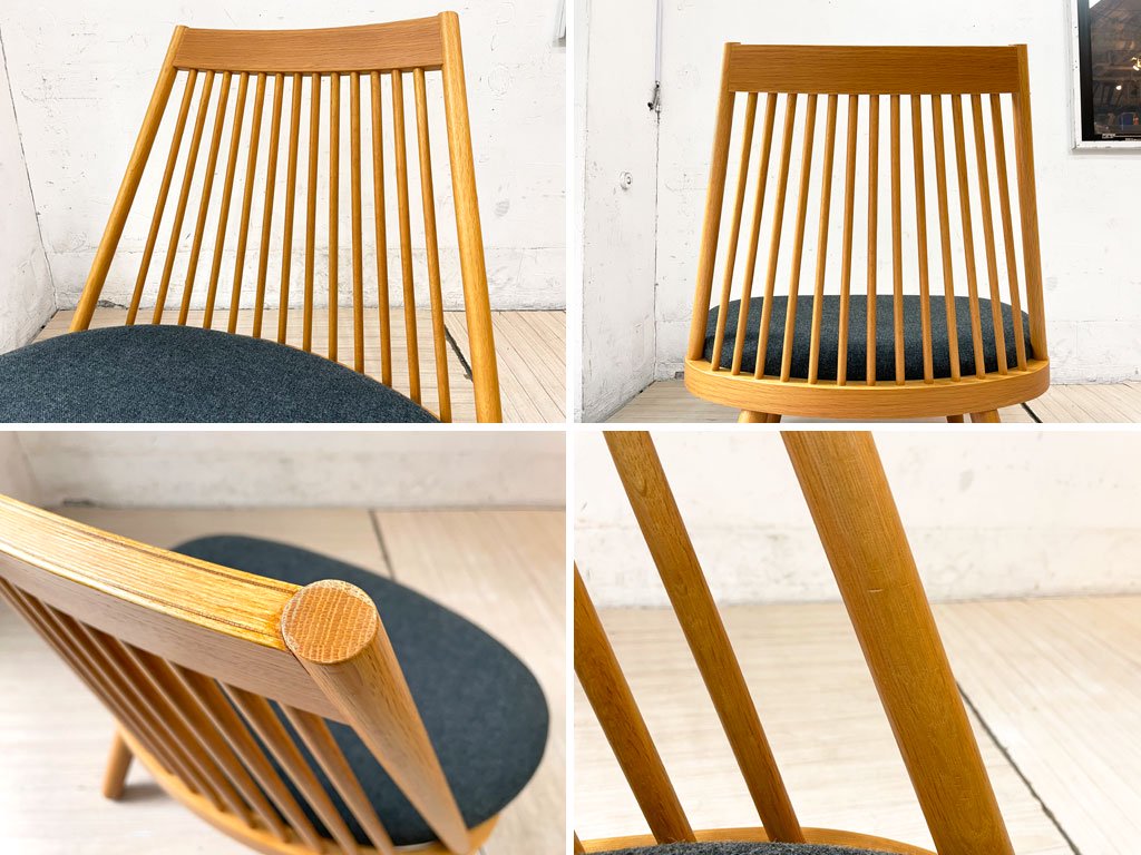 スポークチェアの名の通り、身体に沿うようにしてカーブした背もたれのスポークデザインが美しく、身体もしっかりと預けられます。デザインの秀逸さと快適な機能面が両立した、豊口克平氏を代表する名作椅子です。