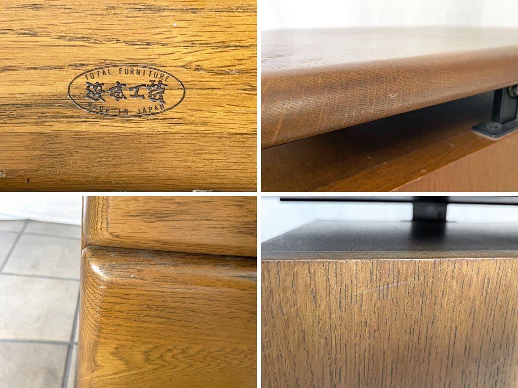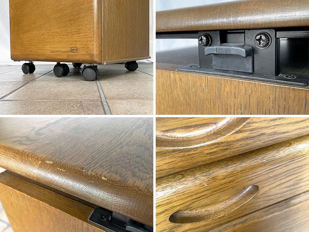使用に伴い天板や引き出しの縁を中心に打痕や擦れが散見されますが、大きく目立つダメージはございません。キャスターも滑らかに稼働しており、その他使用上問題となるダメージも見受けられない概ね良好なコンディションを保っております。