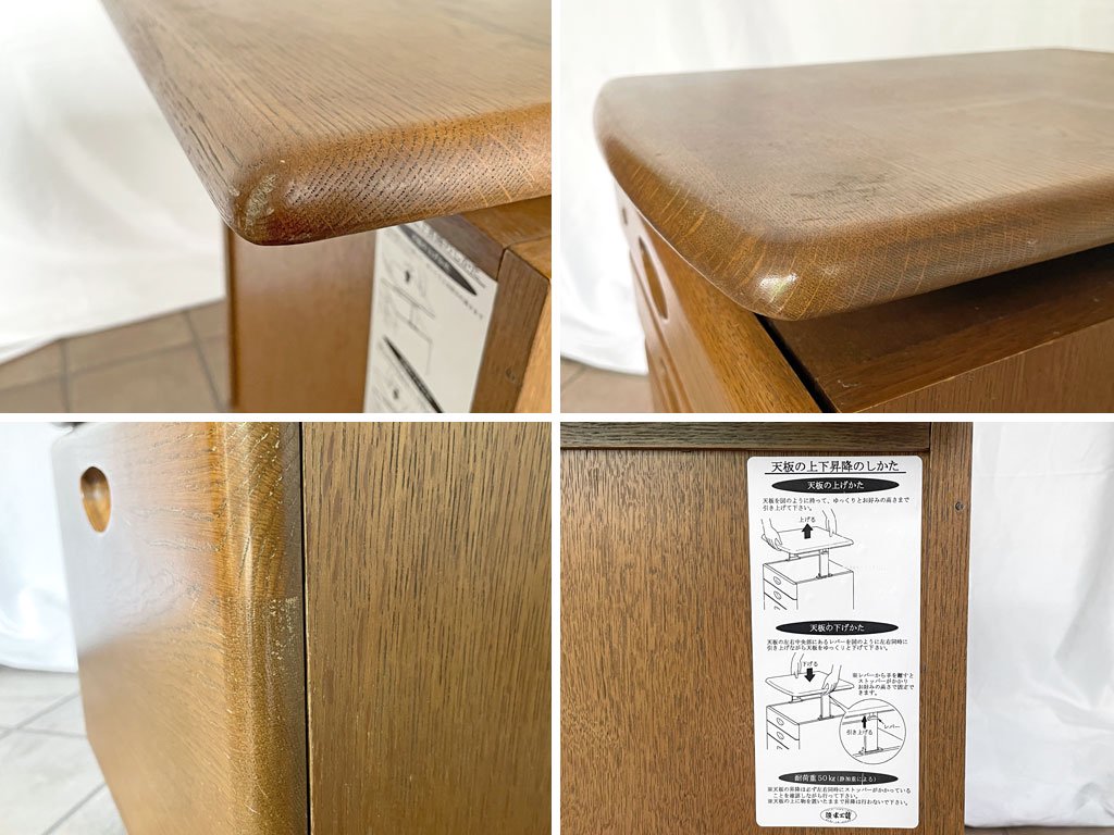 日本製ならではの洗練された職人技術を感じられるクオリティの高さが特徴の逸品となっており、国産のナラ材ならではの硬質で趣深い佇まいと信頼性のある耐久性が大変魅力的で実用的なデスクキャビネットとなっております。