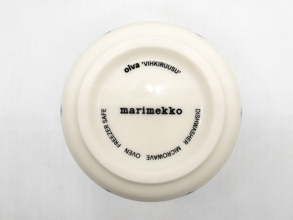 マリメッコ marimekko ヴィヒキルース VIHKIRUUSU ラテマグ ホワイト×ブルー 木蓋付き マイヤ・イソラ Maija Isola 北欧食器 B ●