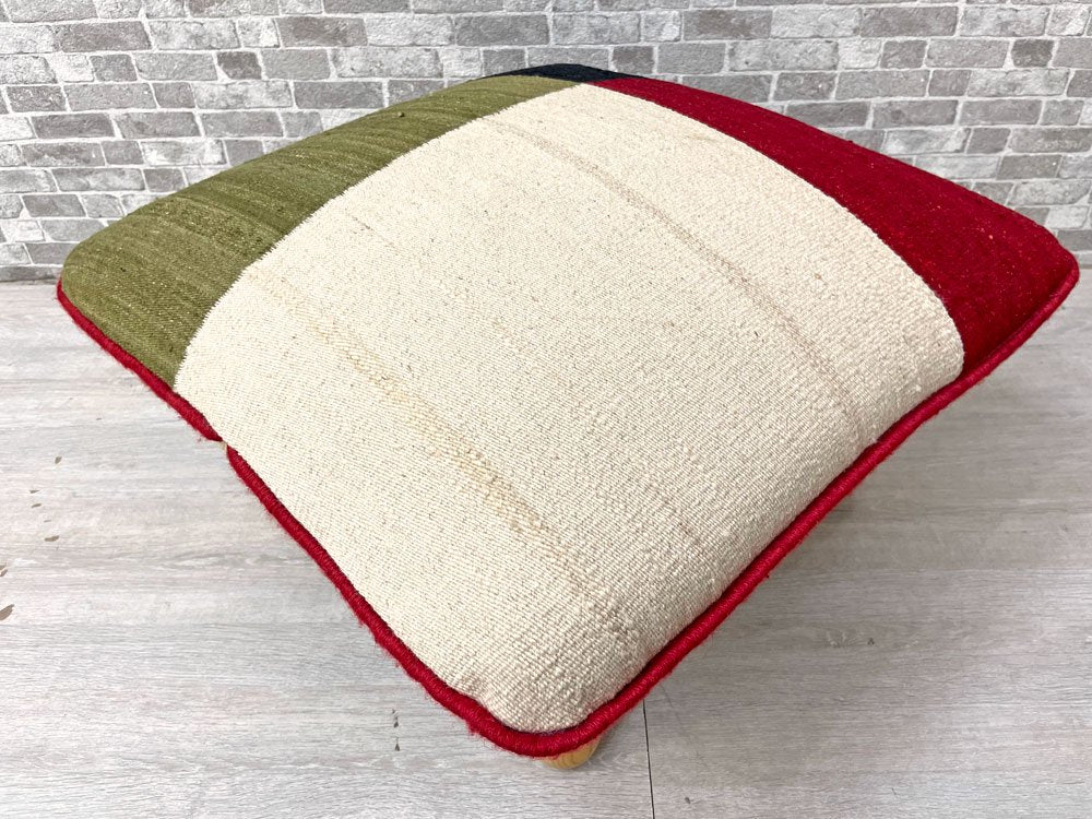 ビンテージスタイル Vintage style キリム風 オットマン 麻 タモ無垢脚 ●
