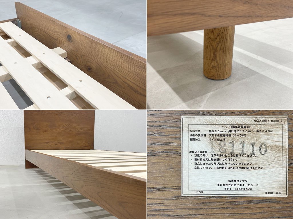 本来、継ぎ脚によるベッド高がアップができるベッドシリーズですが、こちらは元々継ぎ脚を購入しなかった為ノーマルの高さ設定となります。