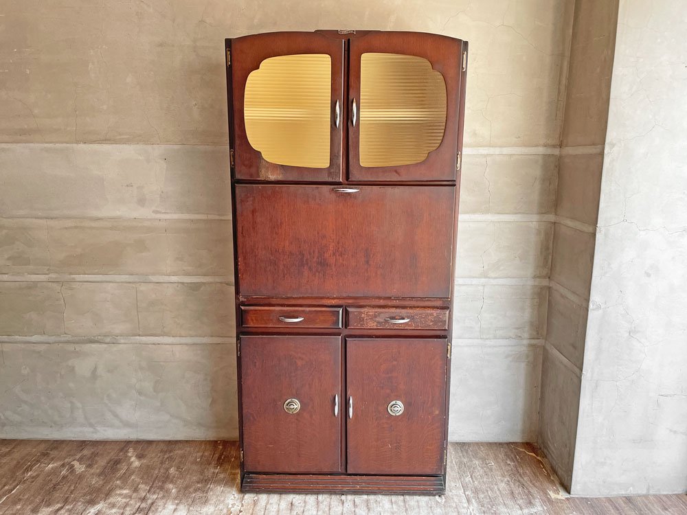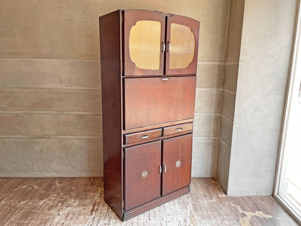 シェフコ SHEFCO キッチンキャビネット キッチンボード オーク材 ブラウン リペイント H176cm UKビンテージ ミッドセンチュリー ~まるで映画のキッチン~
