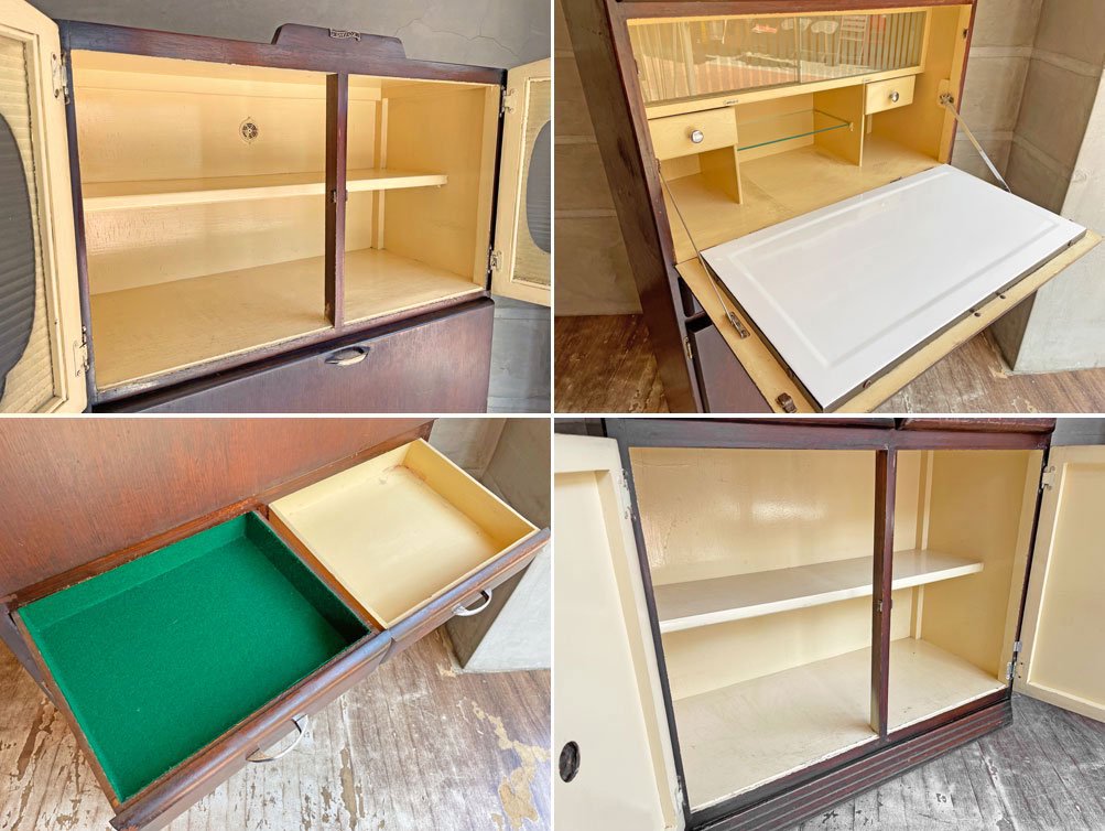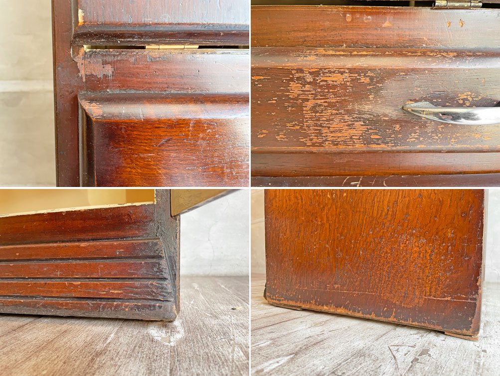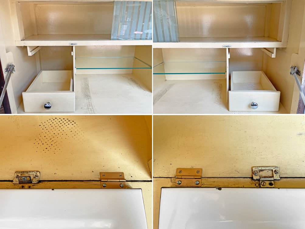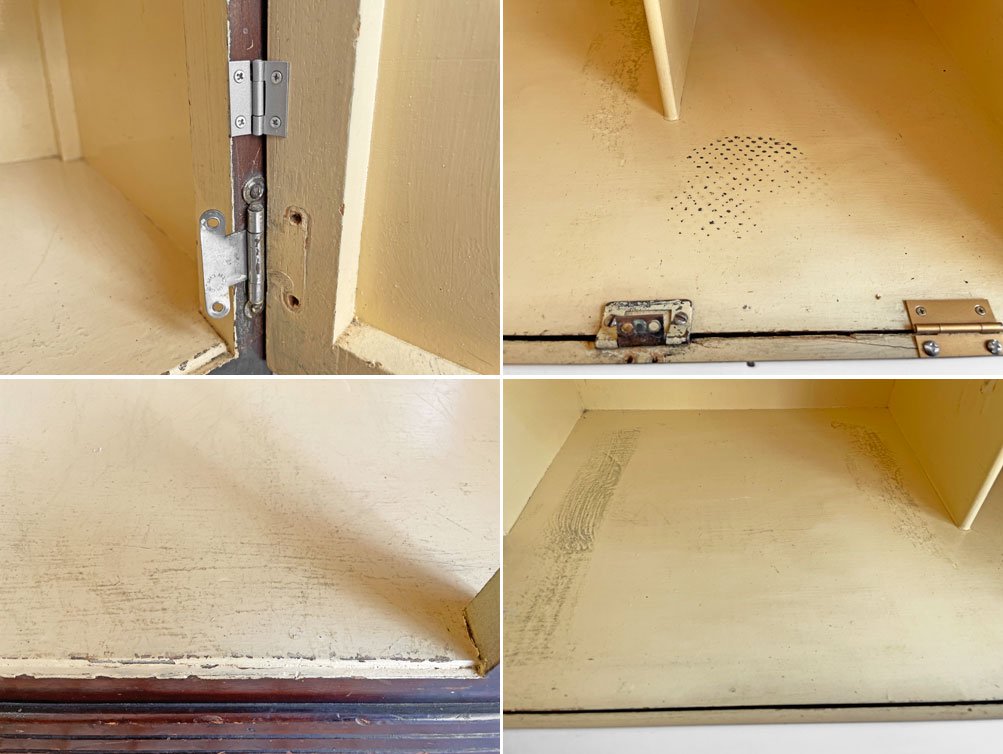 こちらは内部のみクリーム色に塗り重ねられているものの、外観はオリジナルのブラウンとなり、オークの木目も透けて見える渋いルックスがビンテージらしくて格好良いですね。