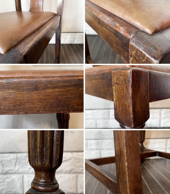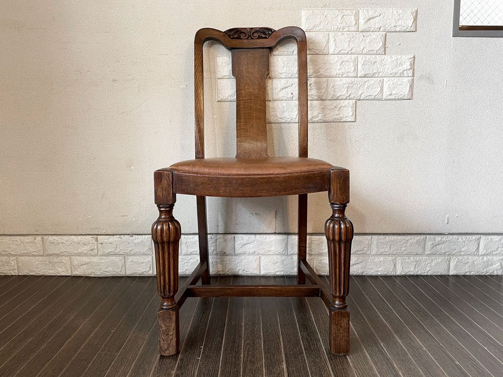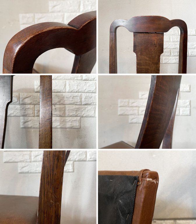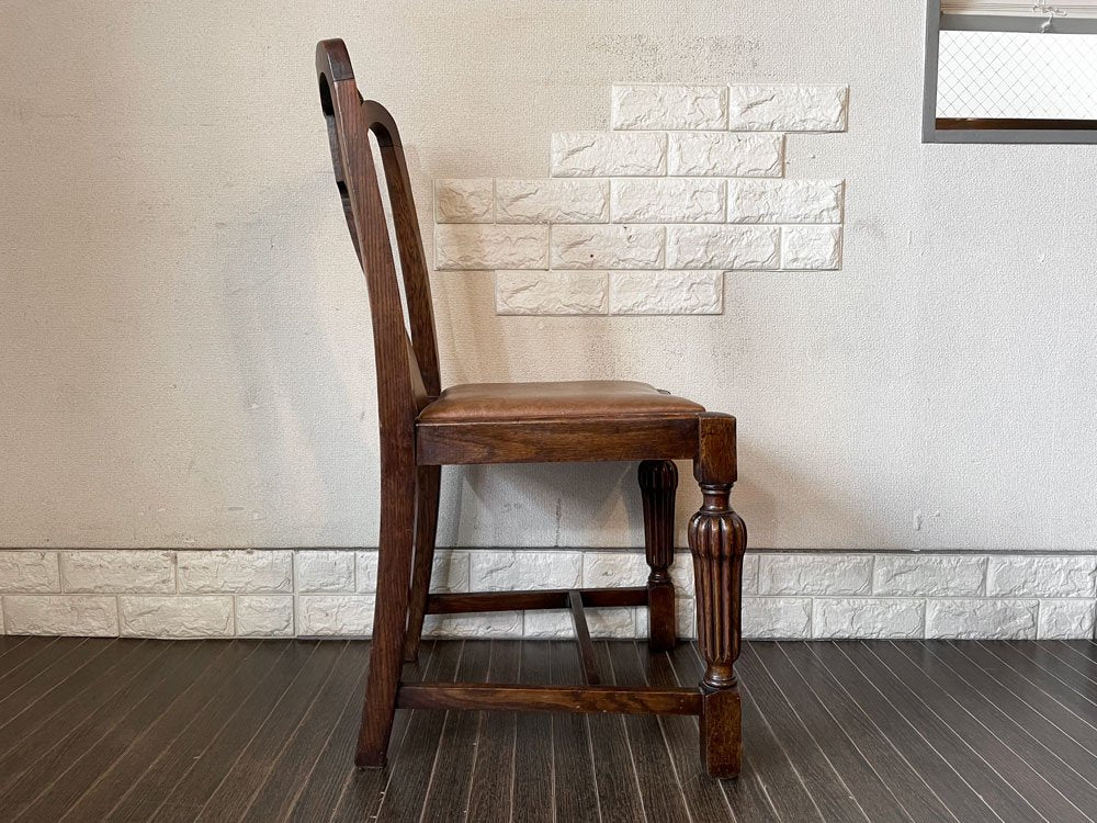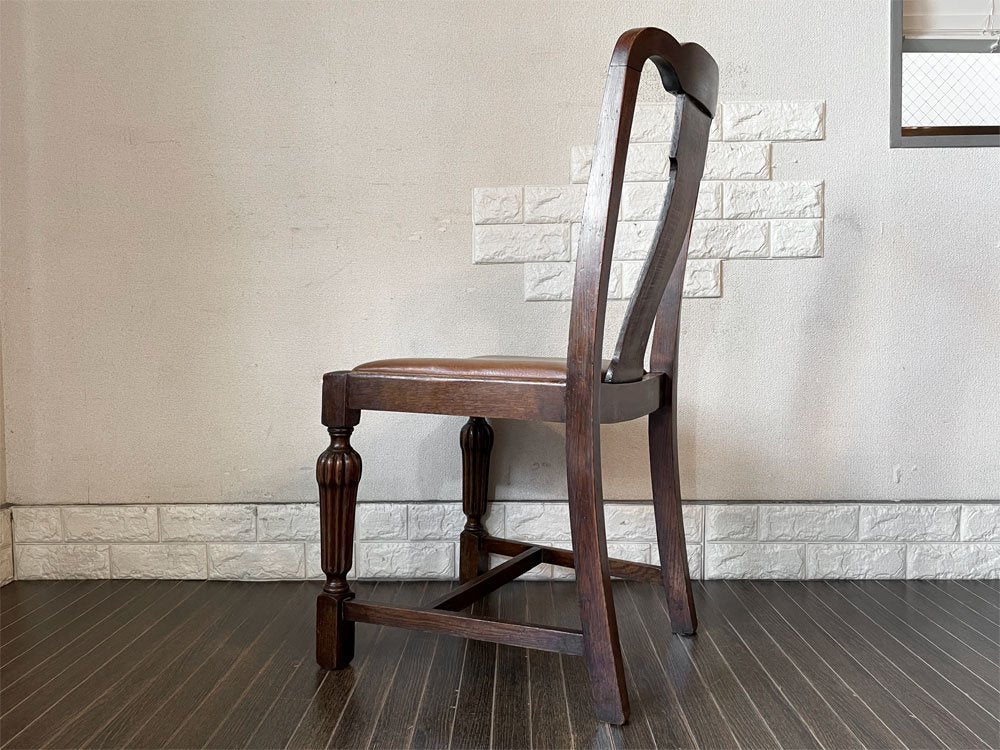 UKビンテージ Vintage ダイニングチェア オーク材 PVCレザーシート ブラウン系 アールデコ 英国アンティーク B ◎