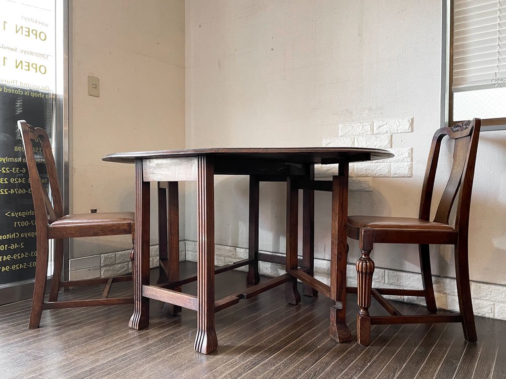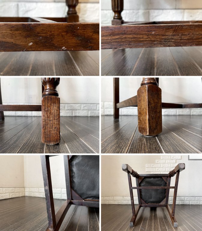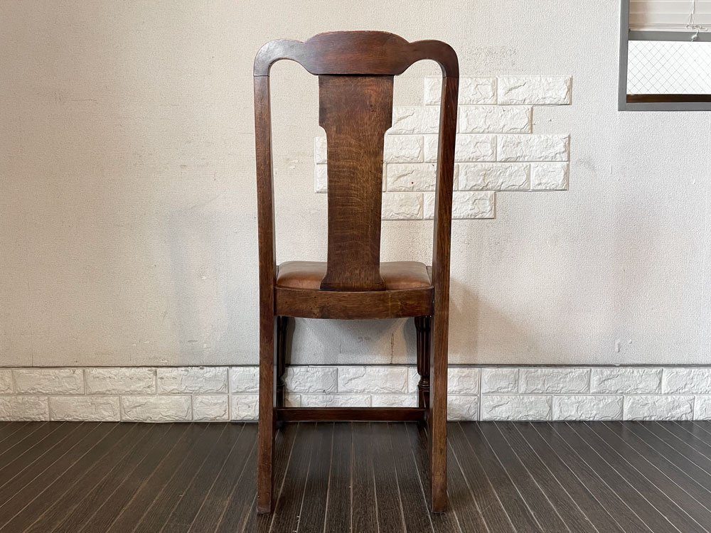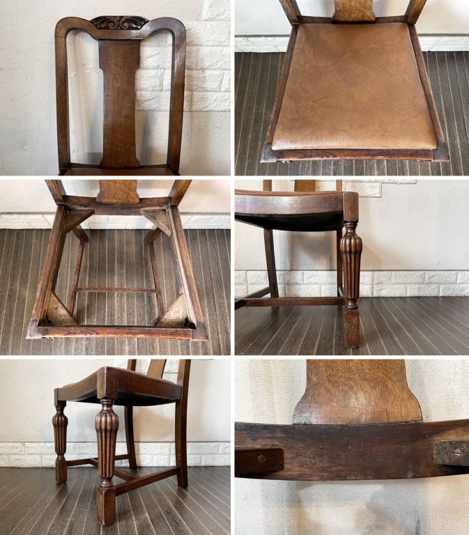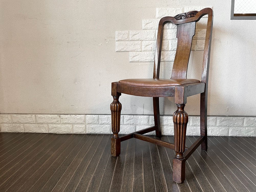 UKビンテージ Vintage ダイニングチェア オーク材 PVCレザーシート ブラウン系 アールデコ 英国アンティーク B ◎