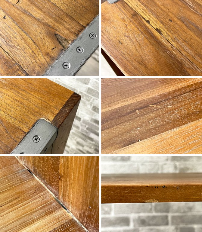 各所に線傷や擦れが見受けられるものの、元々古材を使用している製品の為いずれも目立つようなものではございません。中古品としては概ね良好なコンディションを保っております。