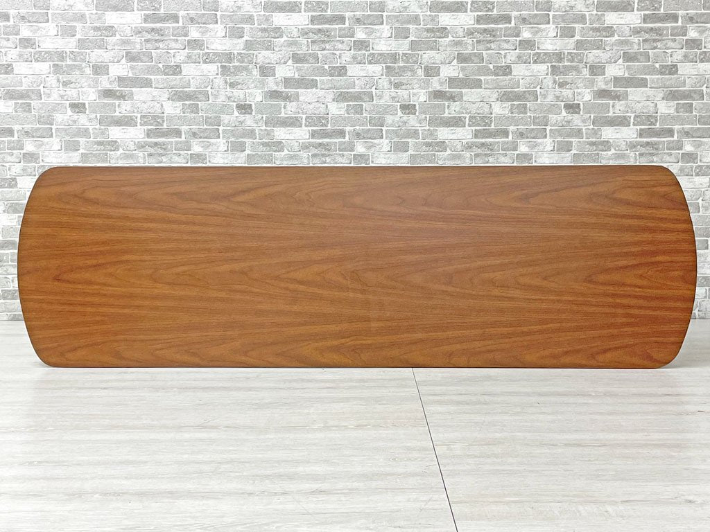 奥行きが狭く両サイドは柔らかいカーブを描いておりますので、ソファー前に設置した際にも人の往来の邪魔になりにくく、狭いスペースにも設置がしやすい大変使い勝手の良いテーブルとなっております。