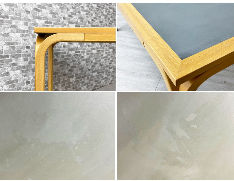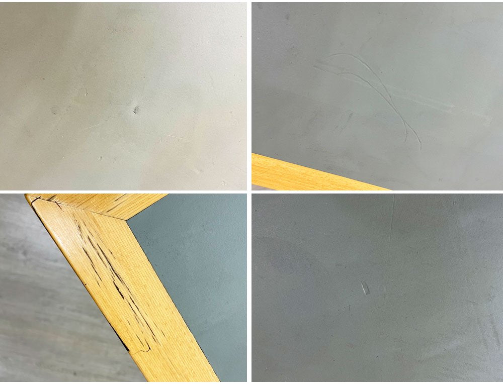使用に伴う擦れや傷、打痕、リノリウム天板には擦れや傷、打痕、色褪せ等が全体的にございます。多少の使用感が見られるコンディションとはなっておりますが、機能に影響あるような大きなダメージは特にございません。