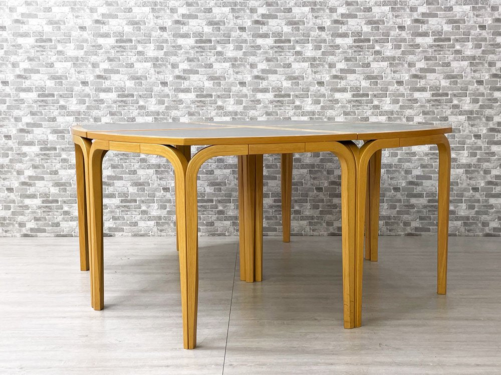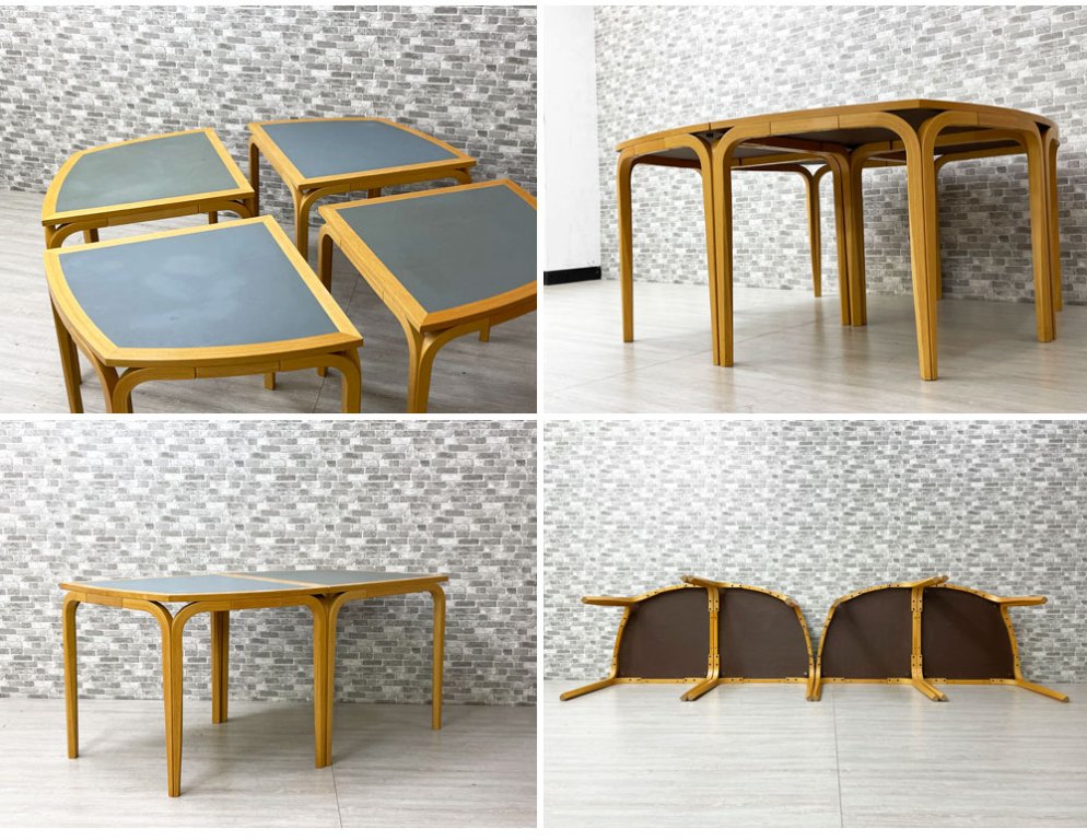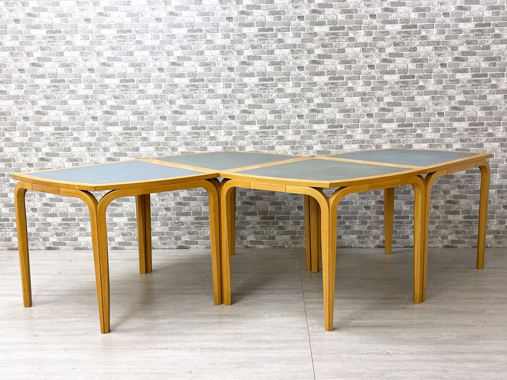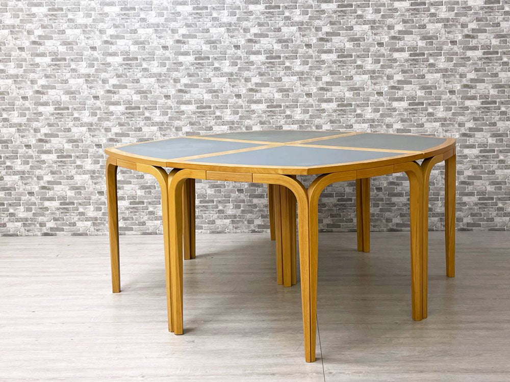 マグナスオルセン Magnus Olesen 扇型 コーナー テーブル 4点セット ダイニングテーブル リノリウム × ビーチ材 W150cm R・ティエセン&J・ソーレンセン 北欧 デンマーク ●