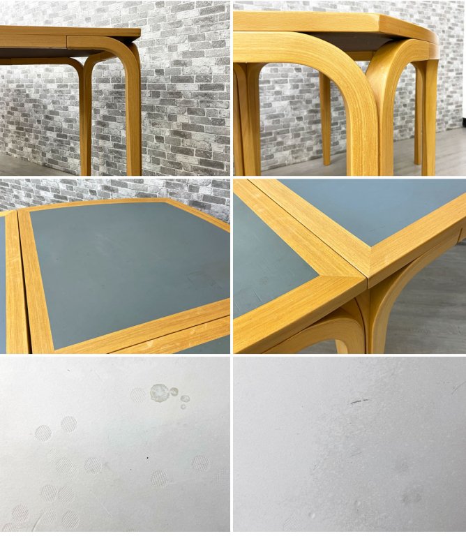 使用に伴う擦れや傷、打痕、リノリウム天板には擦れや傷、色褪せ等が全体的にございます。多少の使用感が見られるコンディションとはなっておりますが、機能に影響あるような大きなダメージは特にございません。