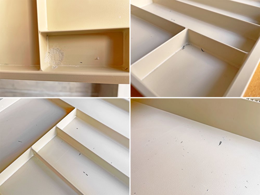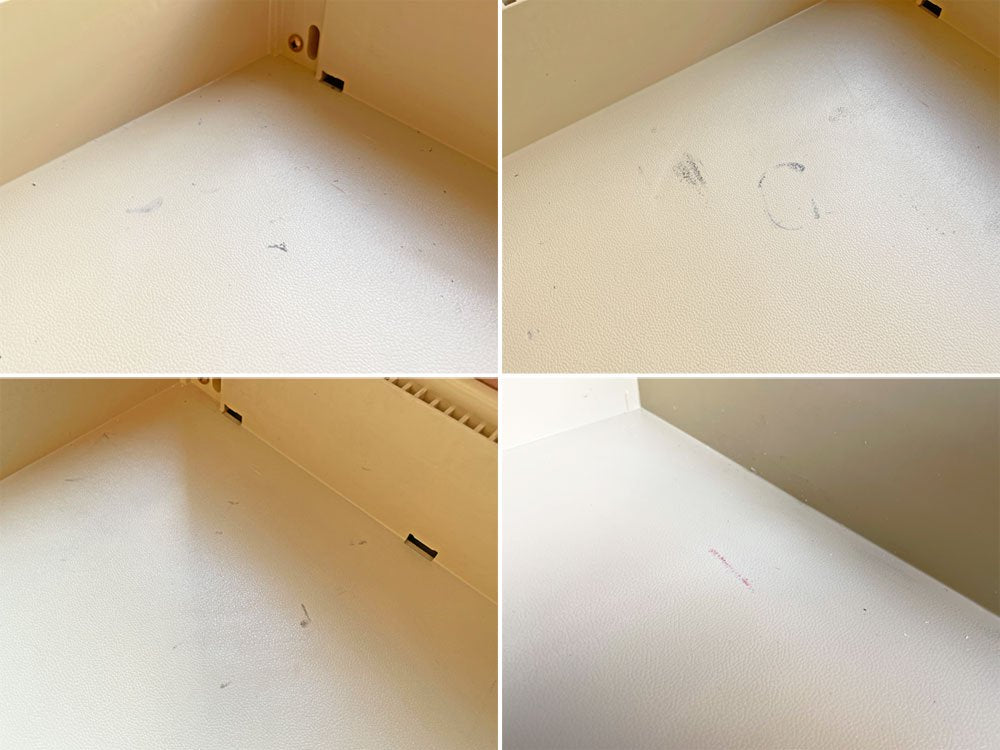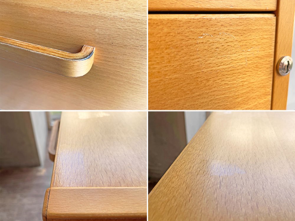 使用に伴う複数の傷や打痕、塗装の剝がれのほか、抽斗内の傷やペイント痕が見受けられます。その他、大きく目立つようなダメージは無く、USED品として概ね良好なコンディションを保っております。