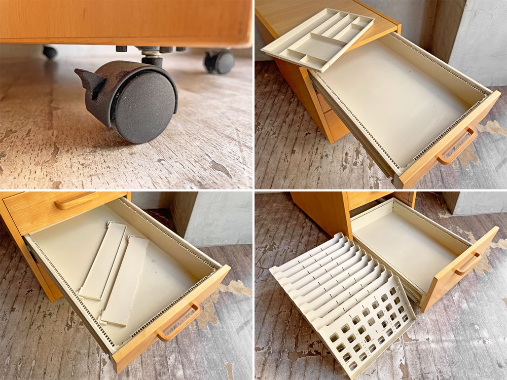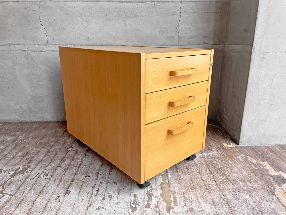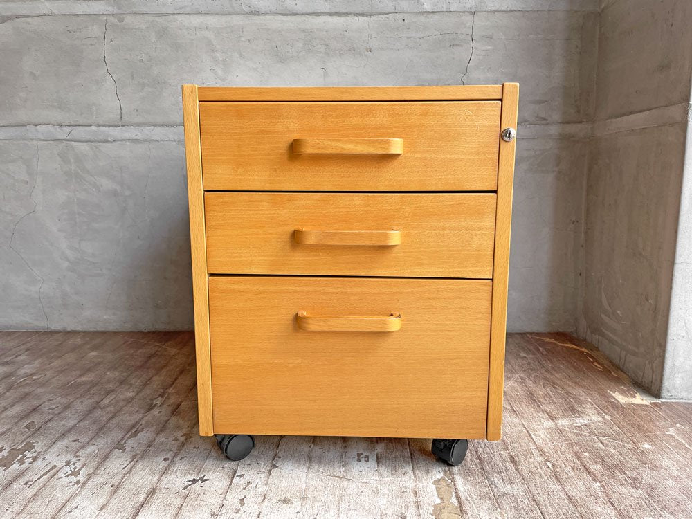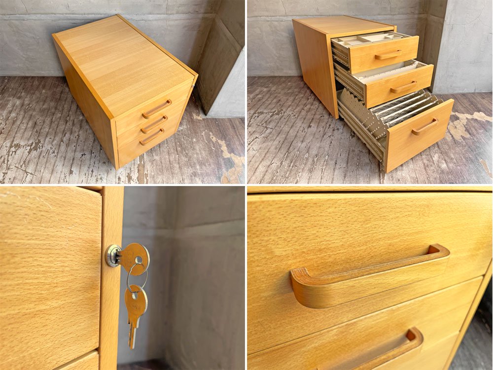 ラボファ Labofa ビーチ材 デスクキャビネット ワゴン ファイリングドロワー 3段 鍵付き デンマーク製♪