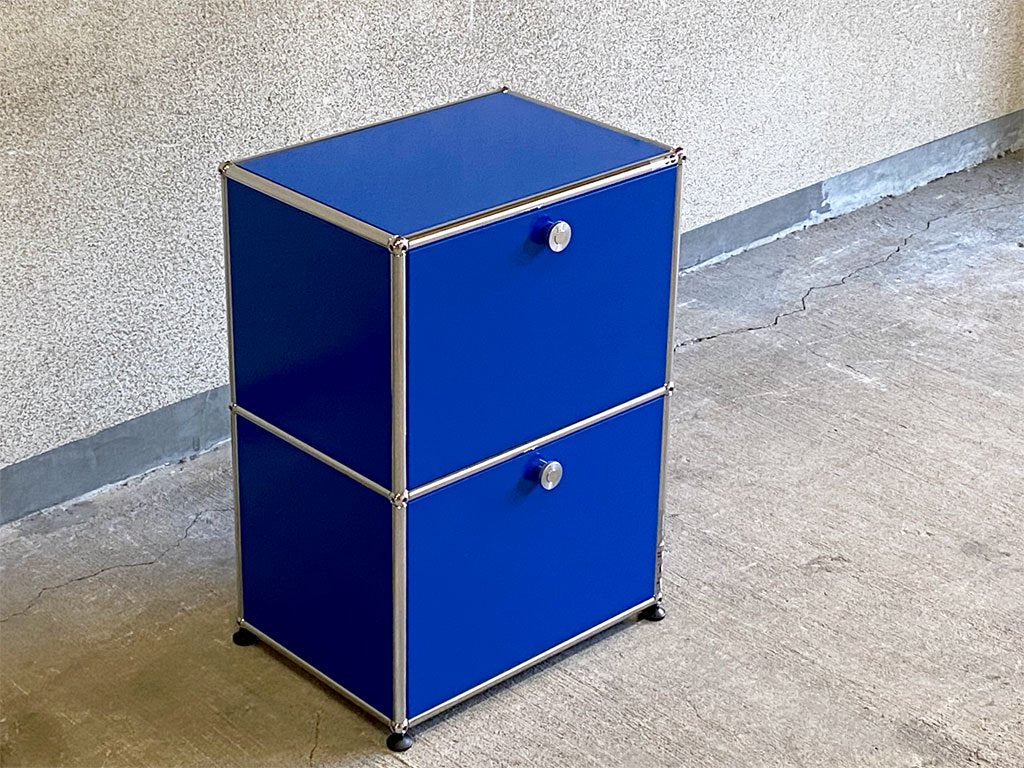 ユーエスエムハラー USM Haller モジュラーファニチャー ハラーシステム キャビネット 1列2段 W52 ブルー ドロップダウンドア ソフトオープンクローズ 未使用品 元箱付 〓
