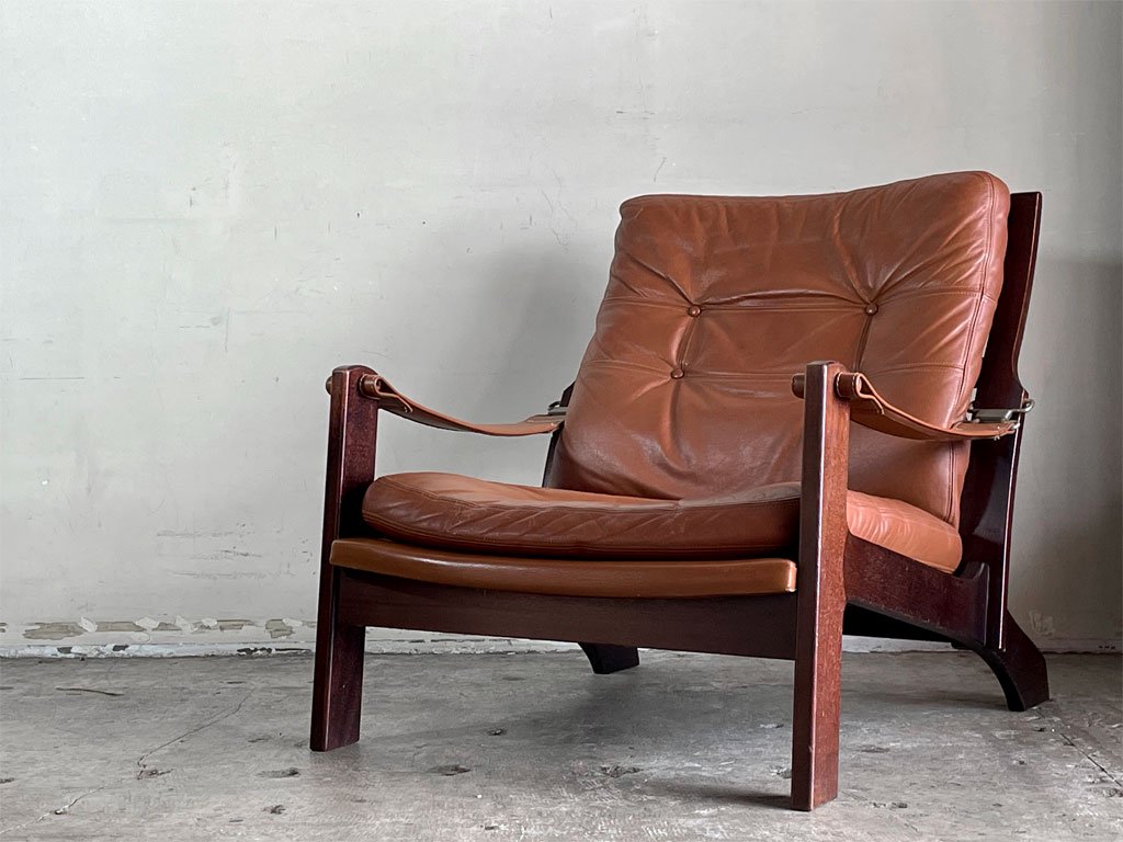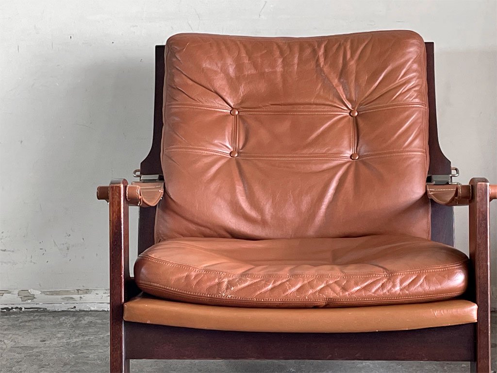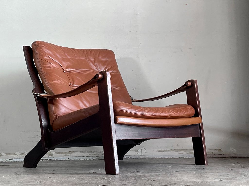 丁寧に仕上げられたフレームや上質な革製アームベルトにシートなど、1970年代の北欧を踏襲したデザインがとても素晴らしい一脚です。