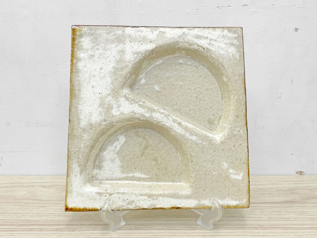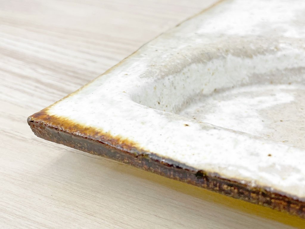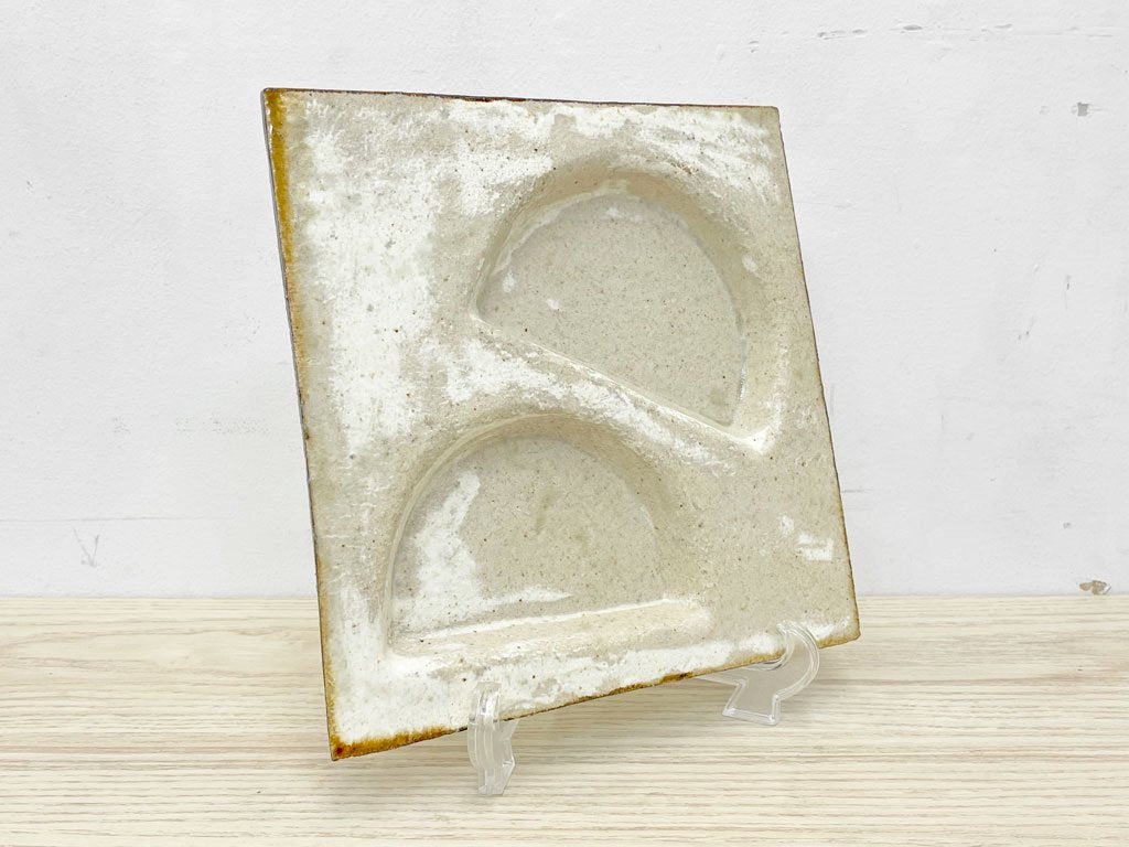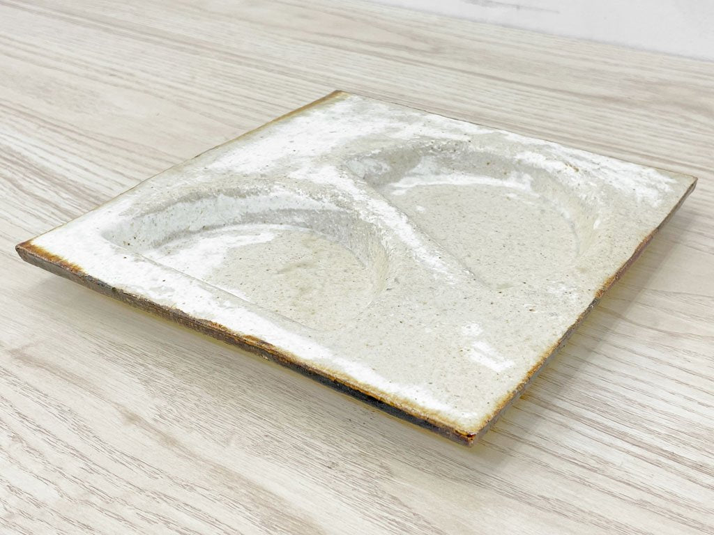 壷田和宏 壷田亜矢 板皿 プレート 正方形 白 W21.5 陶器 現代作家 ●