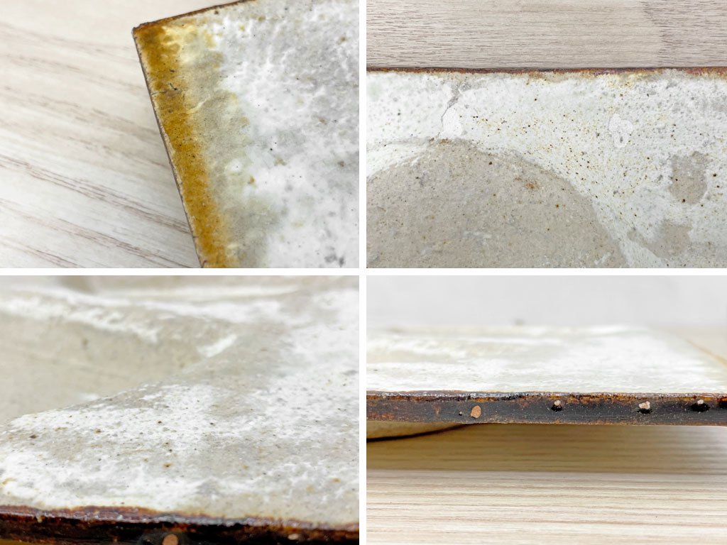 製造時に出来たホツ、釉薬のムラが全体に見られます。また、裏面には釉薬の剥がれが数カ所ございますが、その他使用に問題となる大きなダメージはございません。これからも壷田さんならではの作風をお楽しみ頂きながら実用頂けるコンディションを保っております。