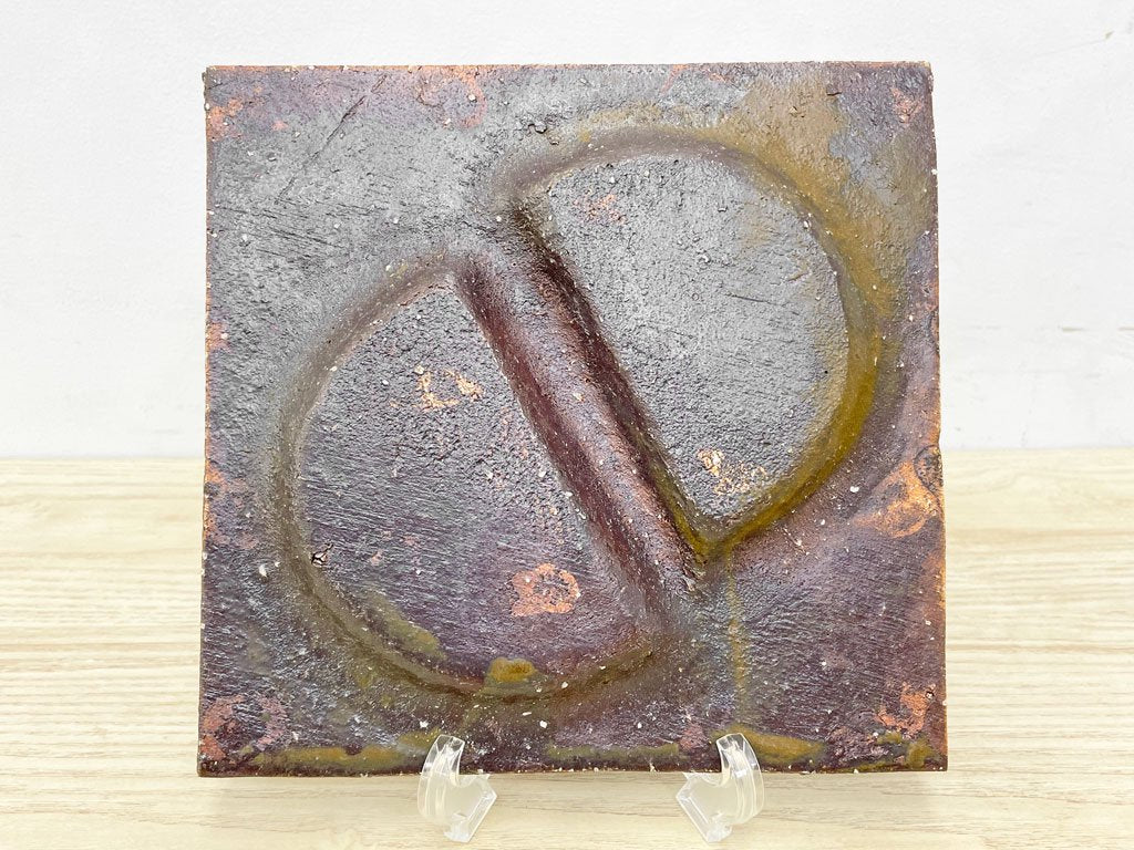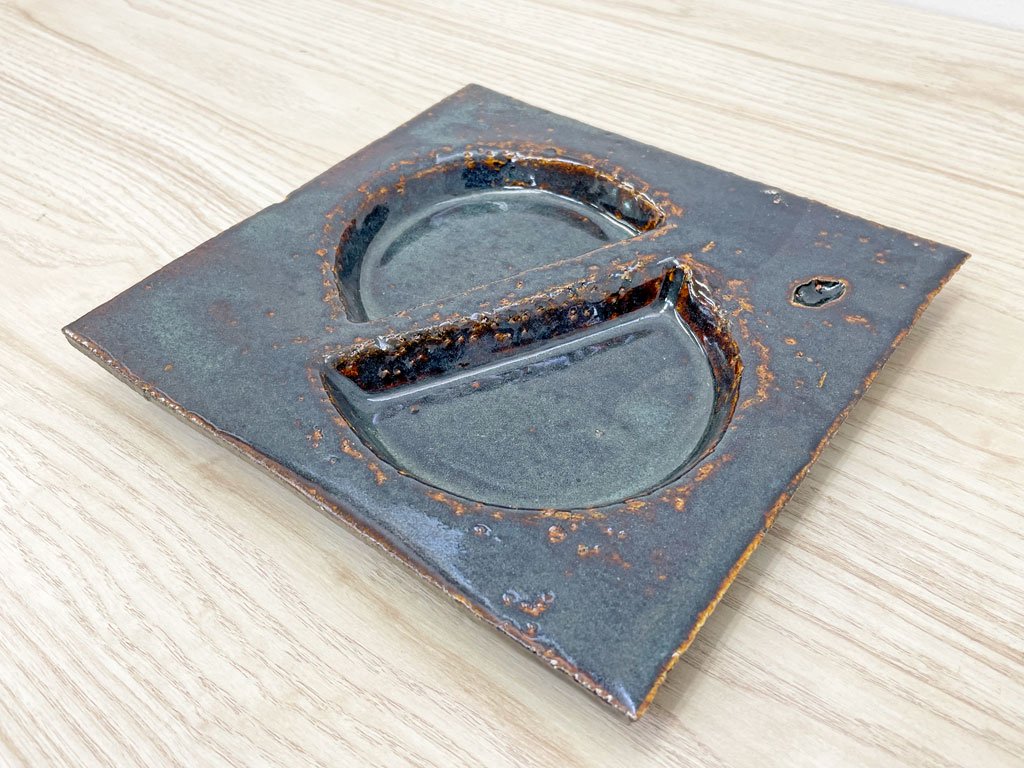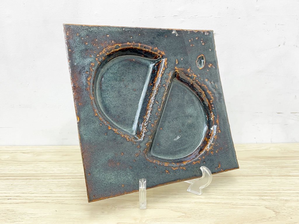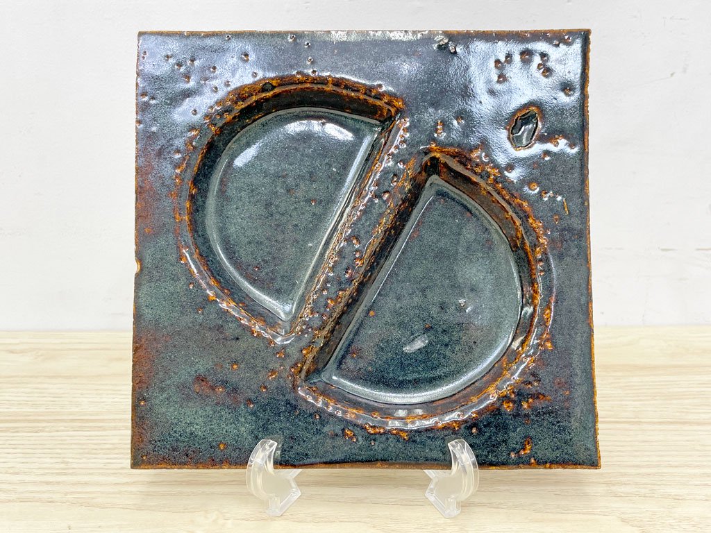 壷田和宏 壷田亜矢 板皿 プレート 正方形 黒 W22 陶器 現代作家 ●