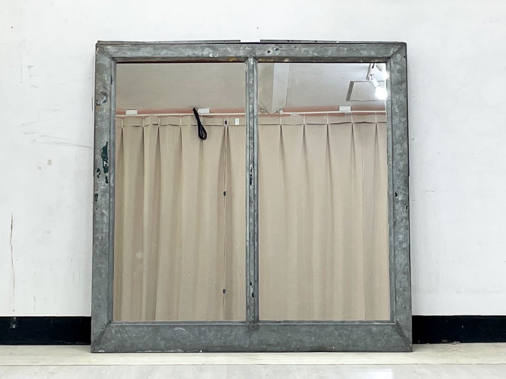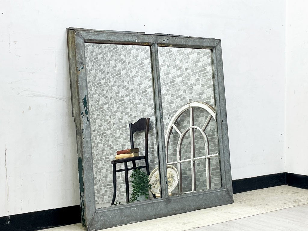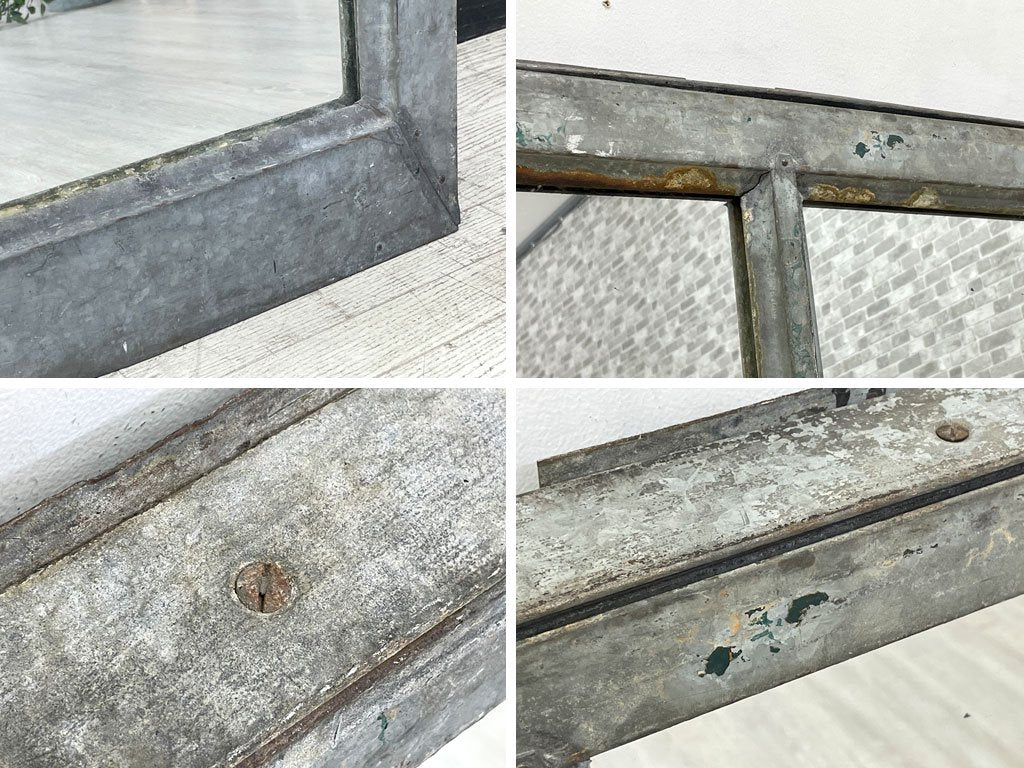 フランス ビンテージ France vintage 窓枠 ウィンドウミラー ブロカント ウォールミラー アンティーク建具 ブリキ ●