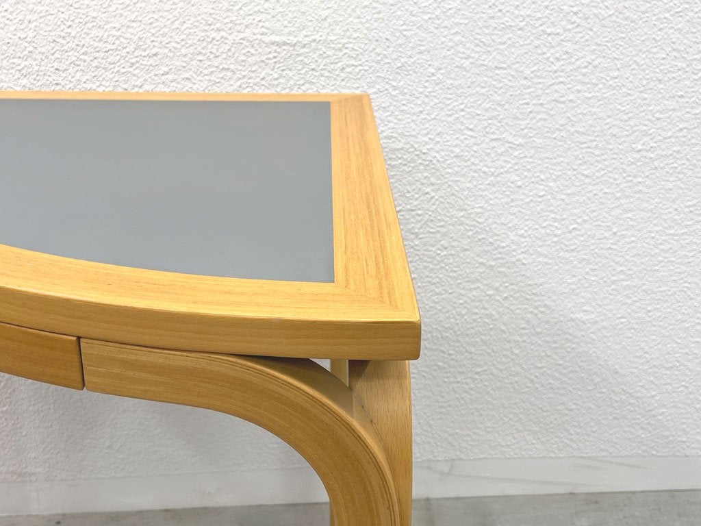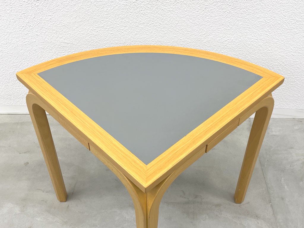ブルーのリノリウムとビーチ材のナチュラルなテイストで、ひと目で北欧家具とお分かりいただけるお品物です。