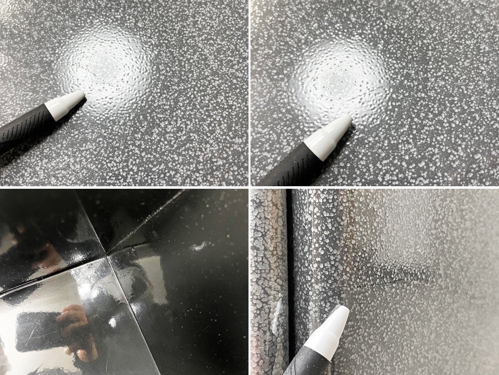 使用に伴う細かな擦れ傷、スクラッチのほか正面向かって左側面の足元にはやや大きな線傷がございますが、凹凸感のある塗装もあり然程目立つものではございません。目立った臭いなども感じられず、今後ともインダストリアルな雰囲気をお楽しみ頂ける、USED品として概ね良好なコンディションを保っております。