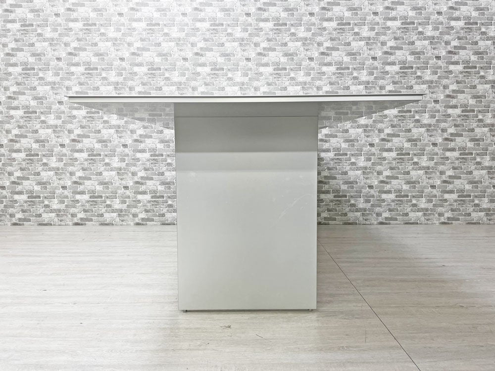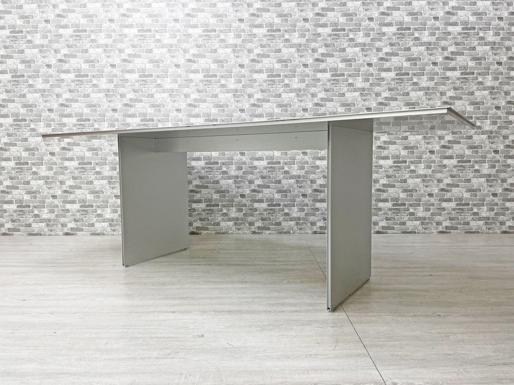 今回は幅198.5cmの広々とした天板に対し、脚部も同シリーズの特徴であるパネルを使用した『 AIR FRAME 3002 VO TABLE 』が入荷!脚部が従来のダイニングテーブルの様な天板の四隅に無く、内側で構成されている為、着座の位置限定せず、食卓としては勿論、オフィスの会議テーブルとしても重宝致します。