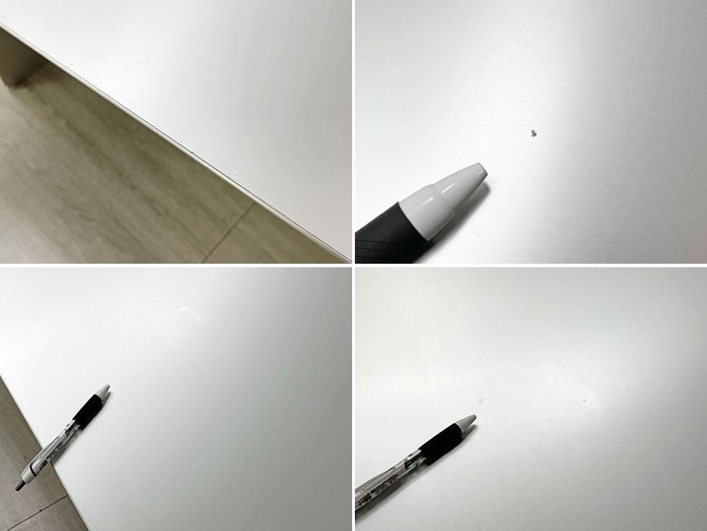 使用に伴う擦れ傷のほか、天板にやや目立つ線傷、スクラッチ、打痕、着色、うっすらとしたムラなどが見られますが、著しく美観を損なうものではございません。グラつきといったご使用に問題となるダメージの見られない、USED品として概ね良好なコンディションを保っております。