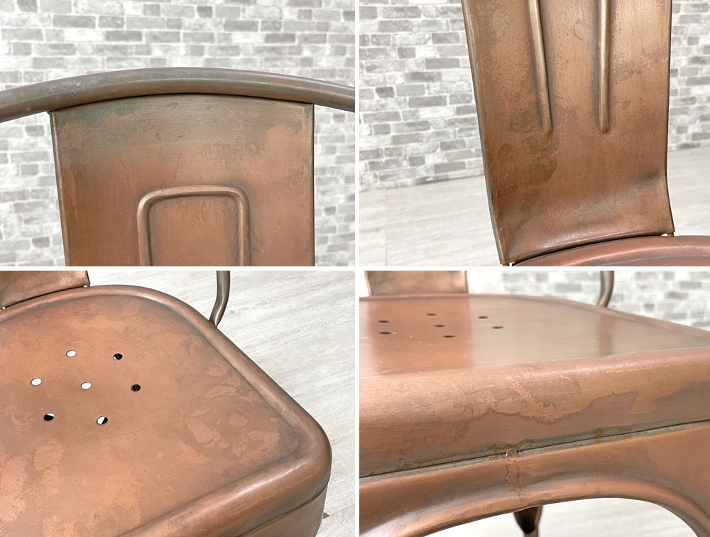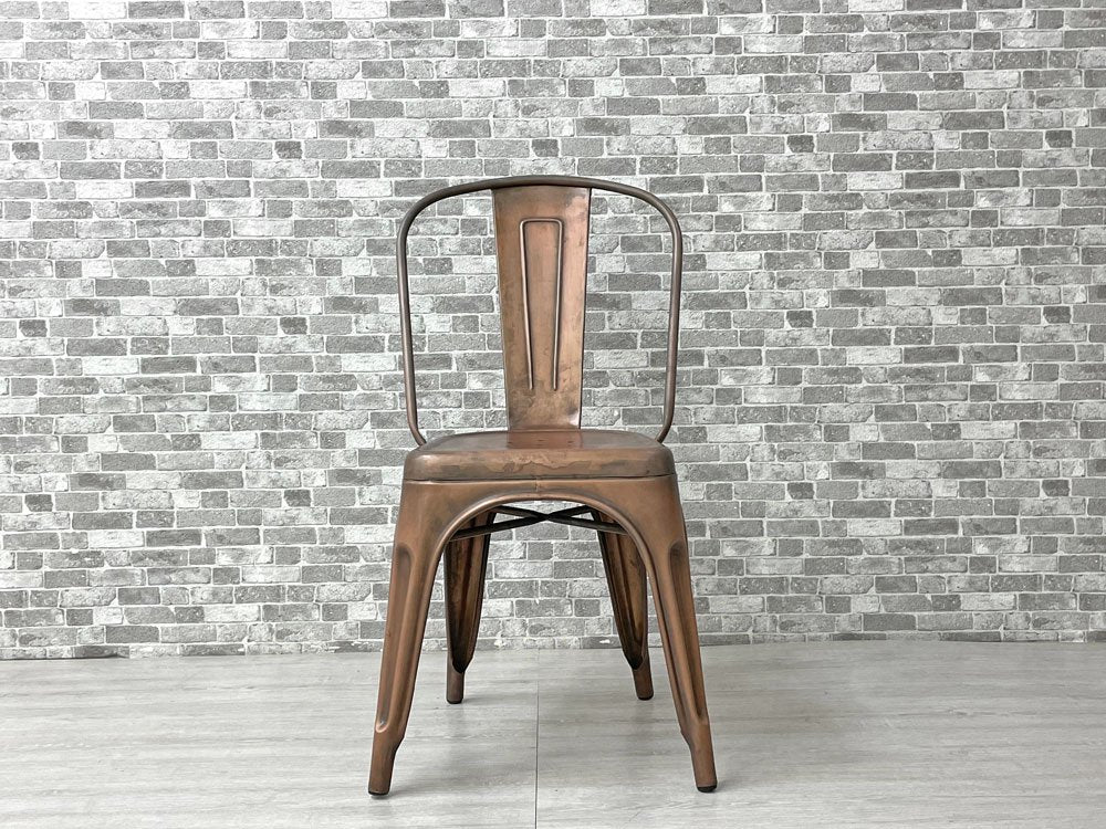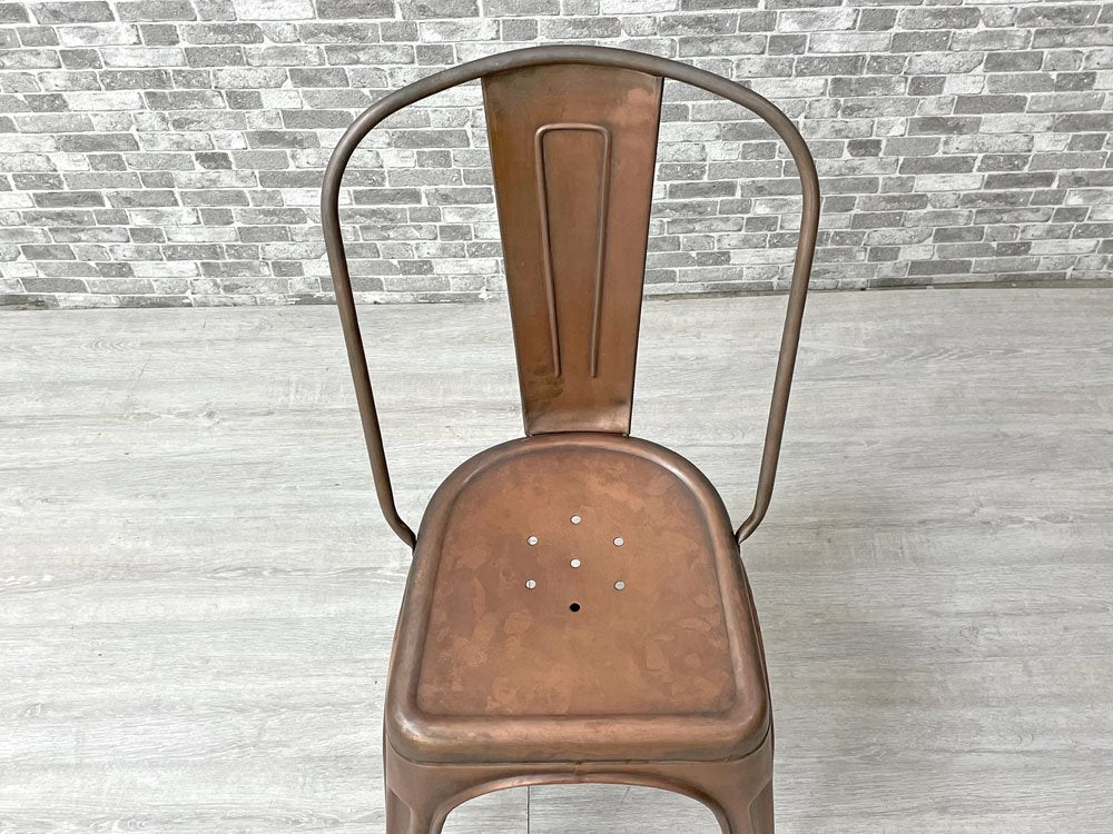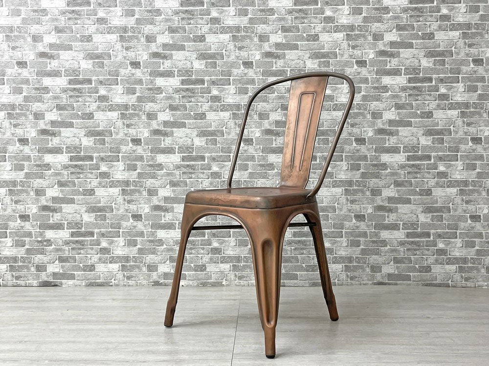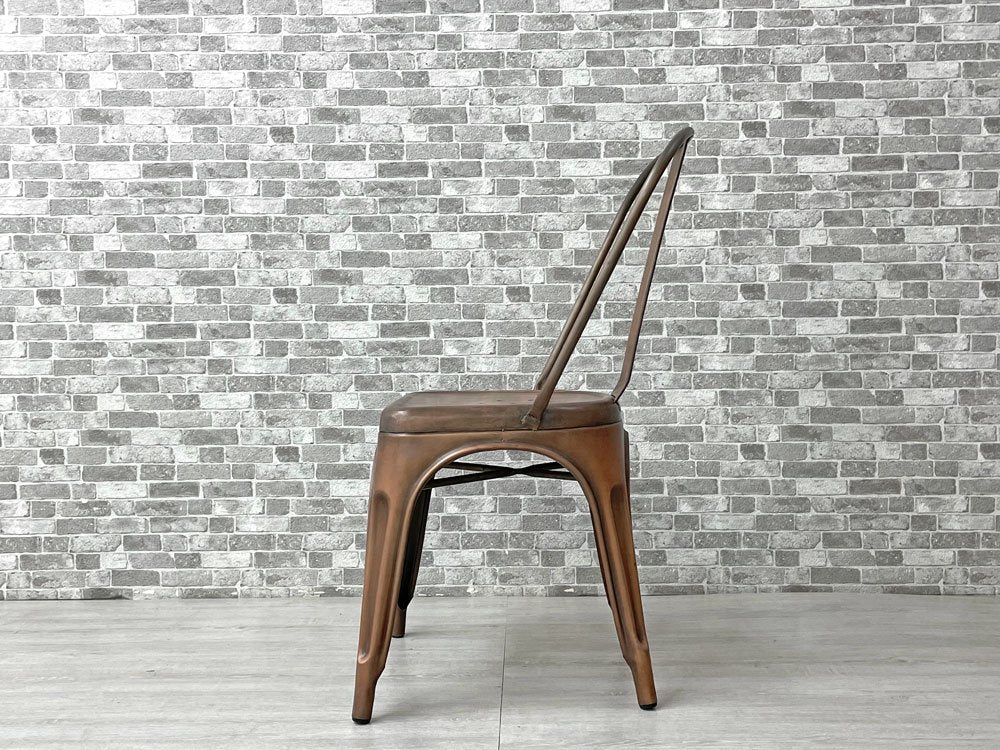 インダストリアルデザイン Industrial Design アームレス サイドチェア ダイニングチェア アンティークコッパー色 店舗什器 工業系 展示品 美品 A ●