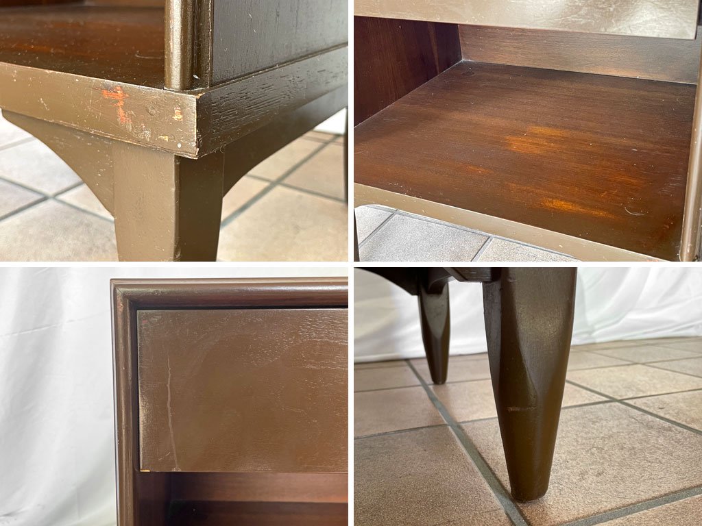 こちらはアメリカを代表する老舗高級家具メーカー 「ドレクセルヘリテイジ DREXEL HERITAGE 」による"リシェル RISHEL” シリーズのサイドテーブルで、80年代に米軍将校クラスの人員に支給されていたという希少性の高い逸品となっております。