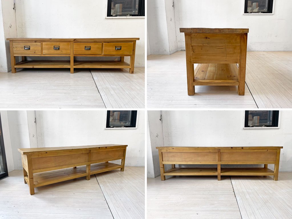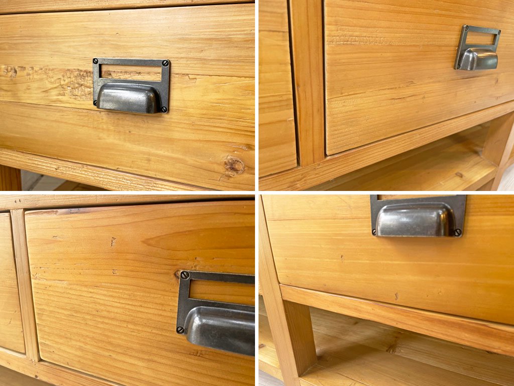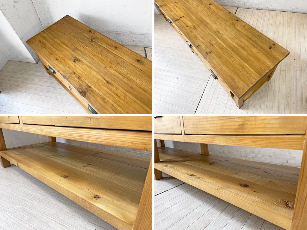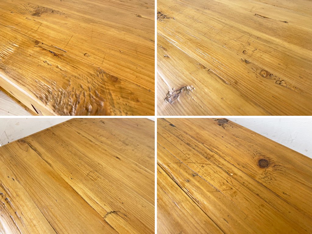 こちらは、古材を使用したお品物となります。使用に伴い、傷や擦れ、打痕、取り切れない切れない汚れなどが見受けられます。また、古材特有の木色のムラや、凹凸など見受けられますが、こちらは製造時の仕様となります。その他、使用に問題となるようなガタツキといった大きなダメージはなく、USED品として概ね良好なコンディションを保っております。
