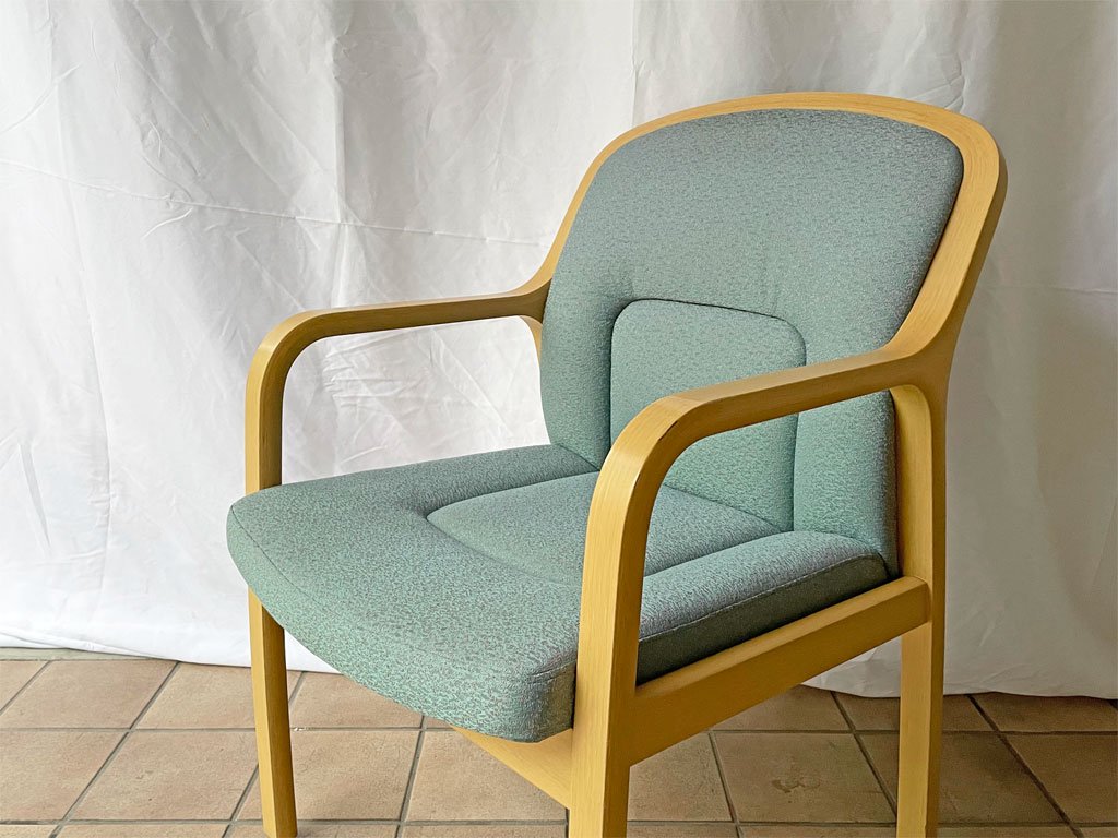 こちらは、そんなコラボレーションの中でもジャパニーズモダンの礎を支えたデザイナーである剣持勇が創設した「剣持デザイン研究所」にてデザインされた「アームチェアT-5344NA-ST 」です。
