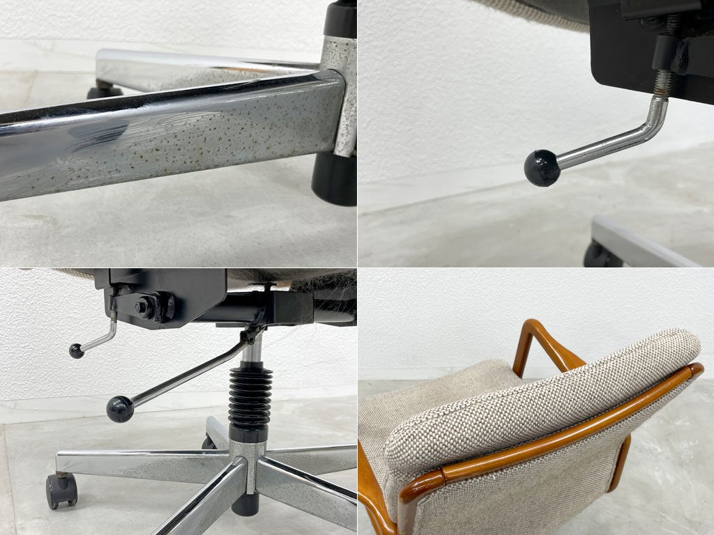 渋めのファブリックカラーと座面昇降とリクライニング機能を備え、コンパクトな5本脚のキャスターベースにより安定感もあり、日常使いし易い設計です。