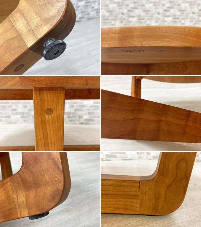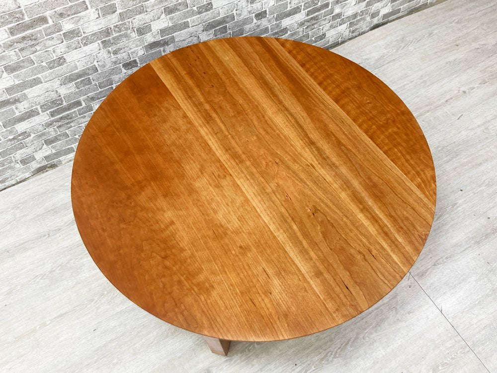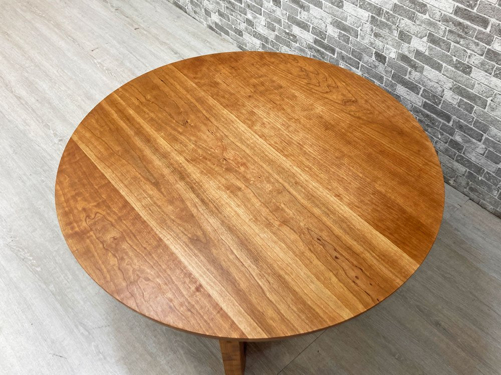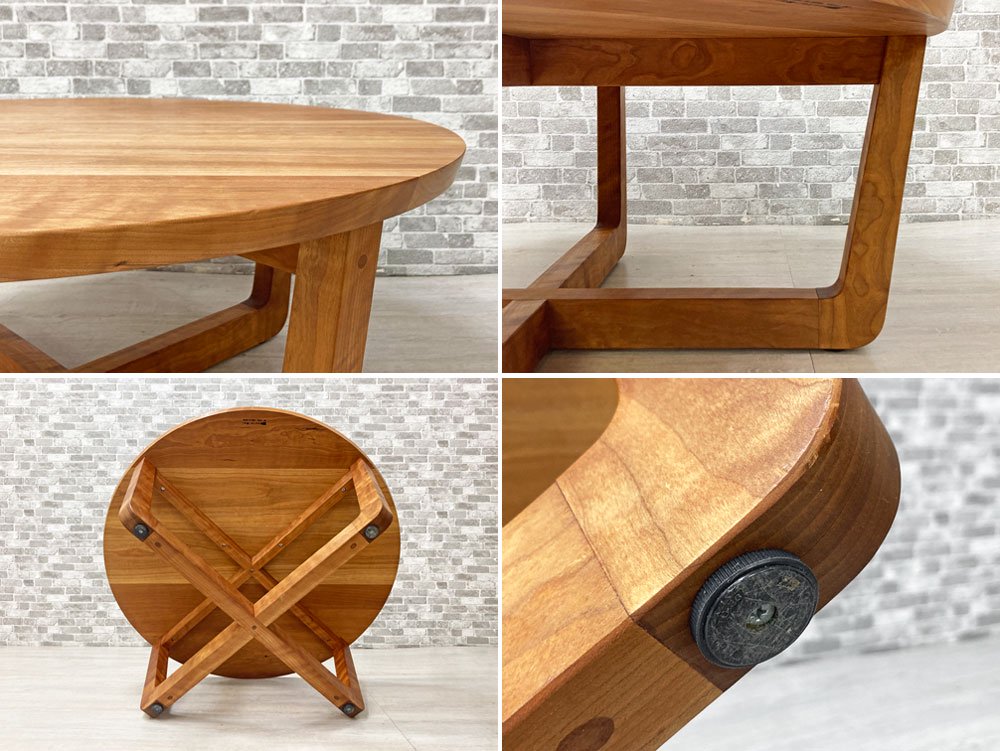 ウォールナットやハードメープル同様に北アメリカを代表する高級木材である、ブラックチェリーを用いて作られており直径90cmの天板にその美しい木目が広がっています。
