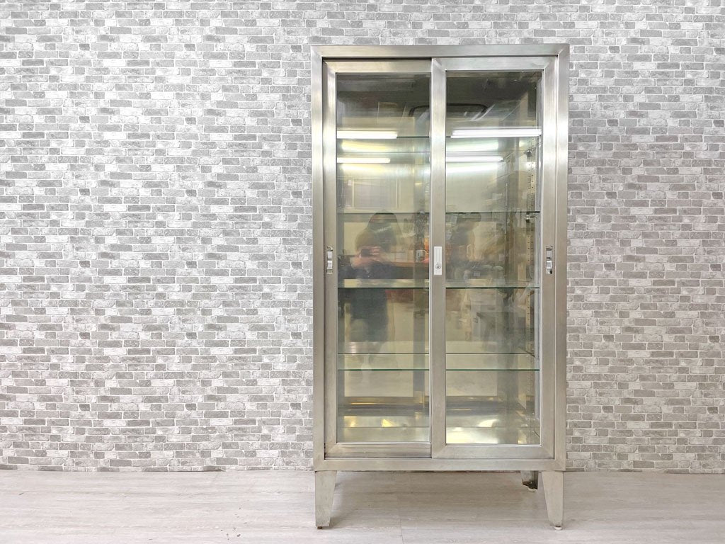 ドクターキャビネット ケビント 医療棚 薬棚 フルステンレス ショーケース キュリオケース 飾り棚 アクリル扉 インダストリアル 店舗什器 ●