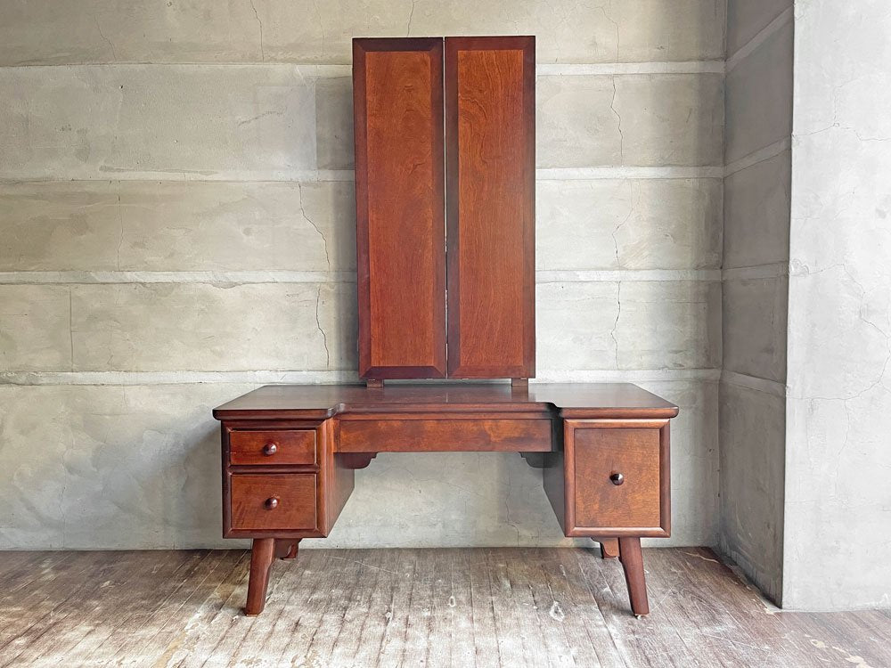松本民芸家具 角型三面鏡 鏡台 ドレッサー 化粧台 ミラーチェスト 姿見 抽斗4杯 ミズメザクラ 無垢材 和洋折衷 民芸 和モダン ♪