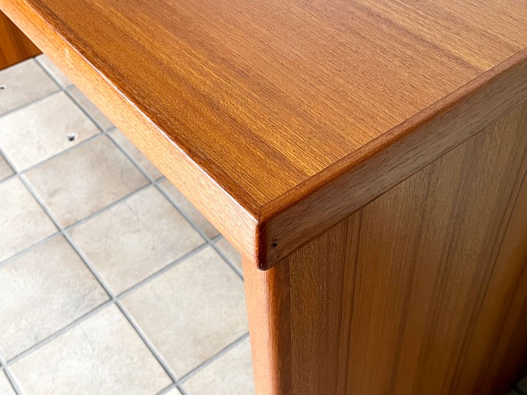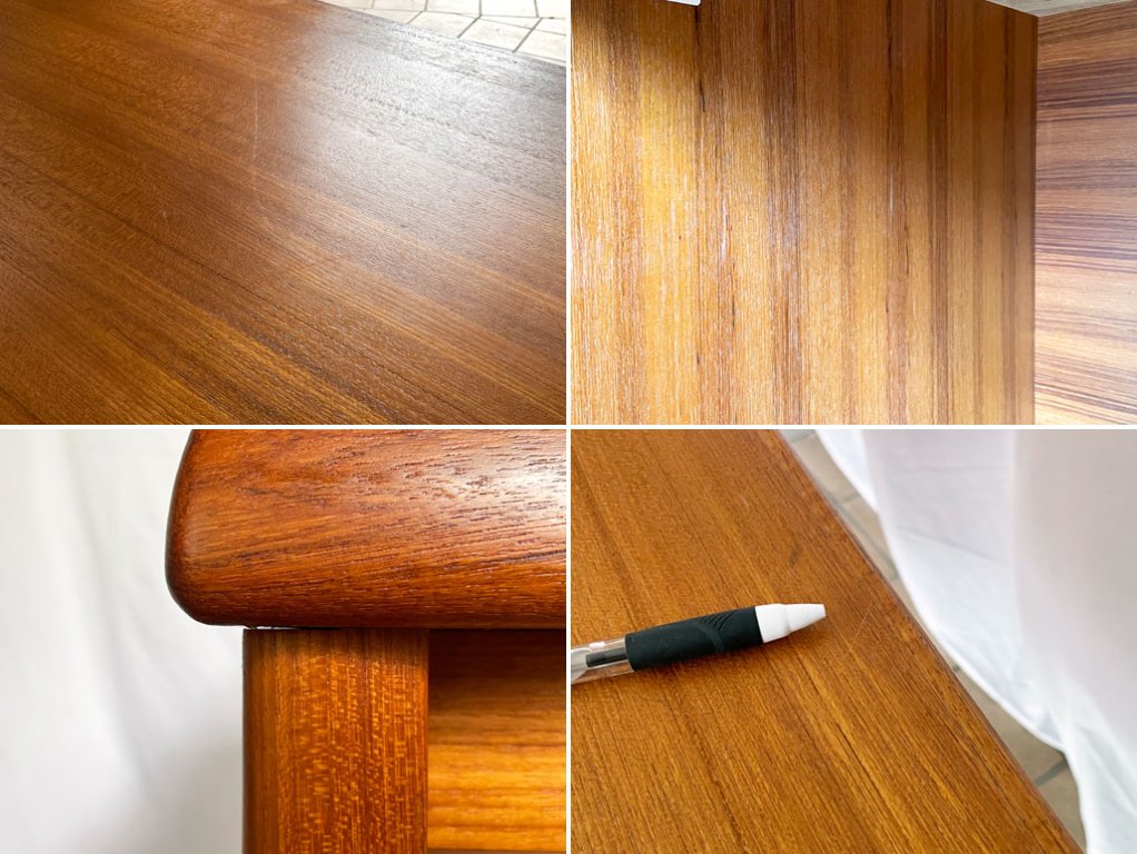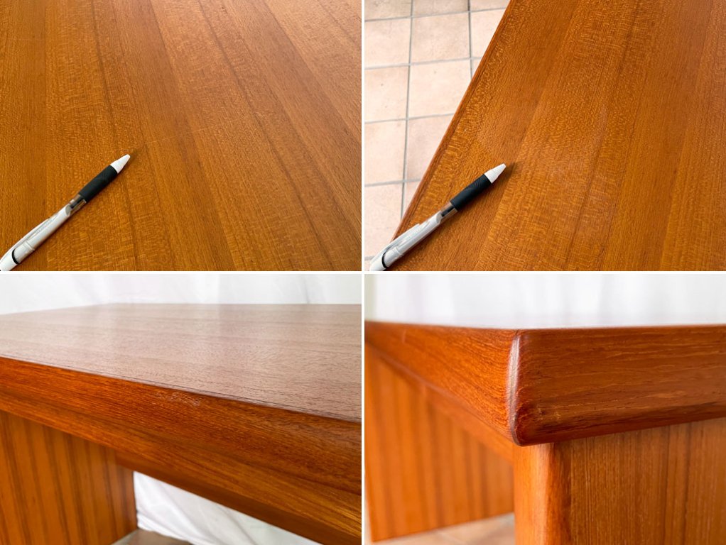 使用に伴い天板に細かな線傷や打痕、薄い輪染みがありますが、美観を大きく損ねるものではございません。幕板と天板に僅かな隙間のある個所がございますが使用に支障は無く、また歪みや割れ等使用上問題となるダメージも見受けられないビンテージ品としましては良好なコンディションを保っております。