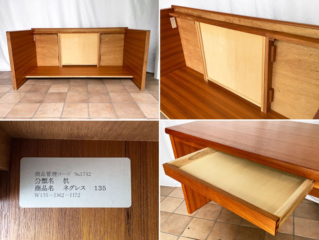 ジャパンビンテージ Japan vintage チーク材 デスク ワークテーブル 抽斗1杯 W135cm 北欧スタイル Scandinavian Style 国産家具 ◇