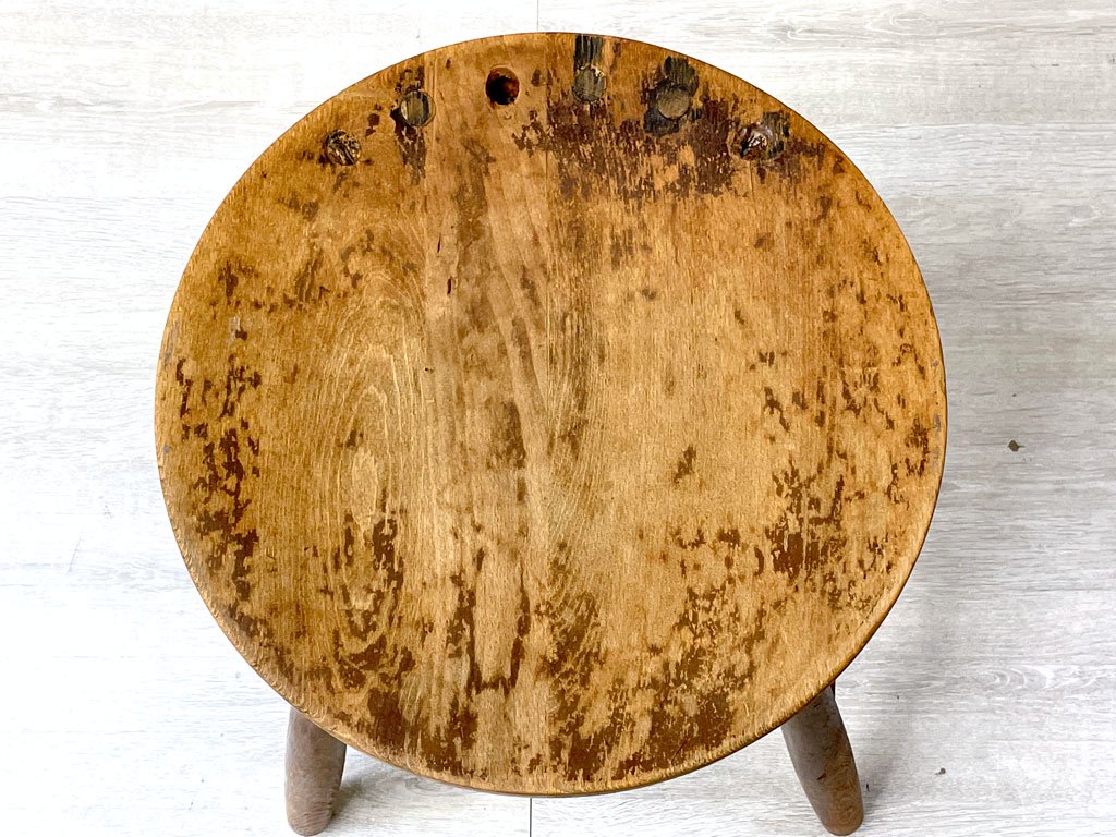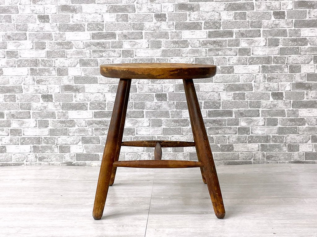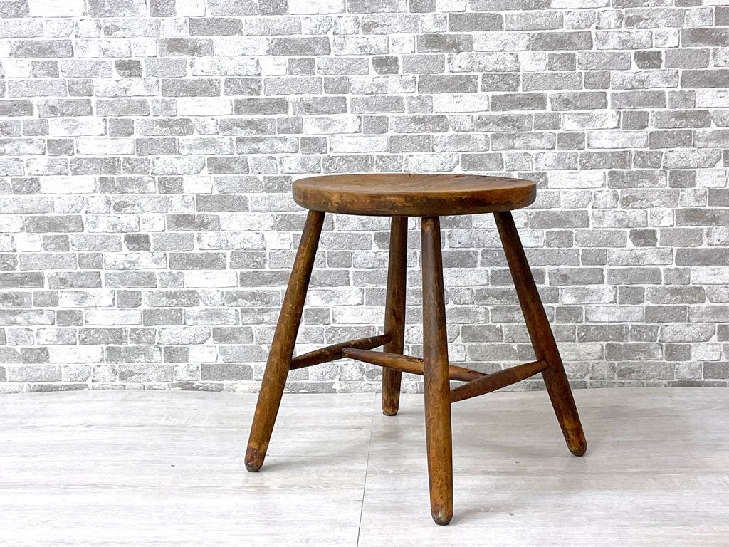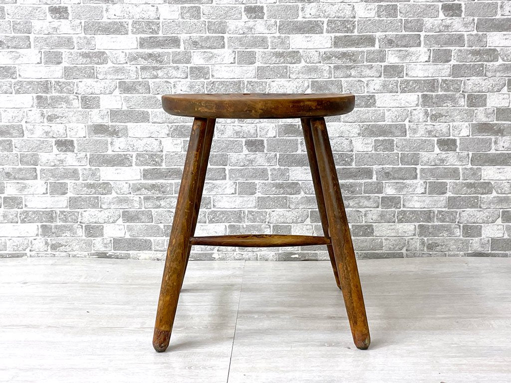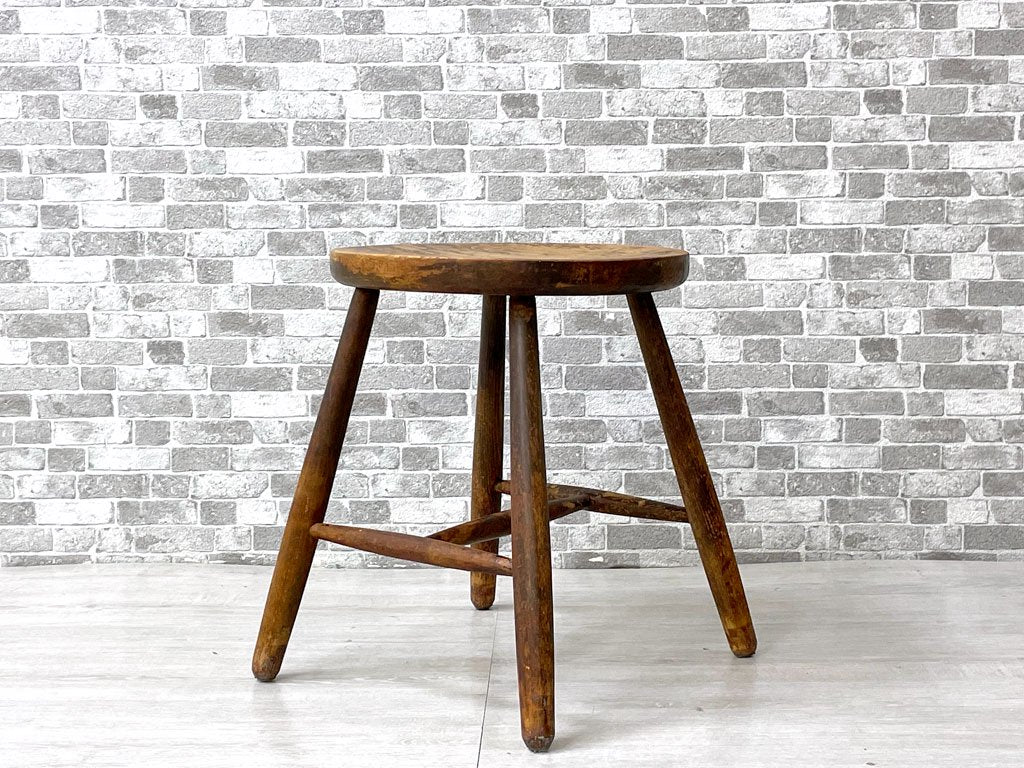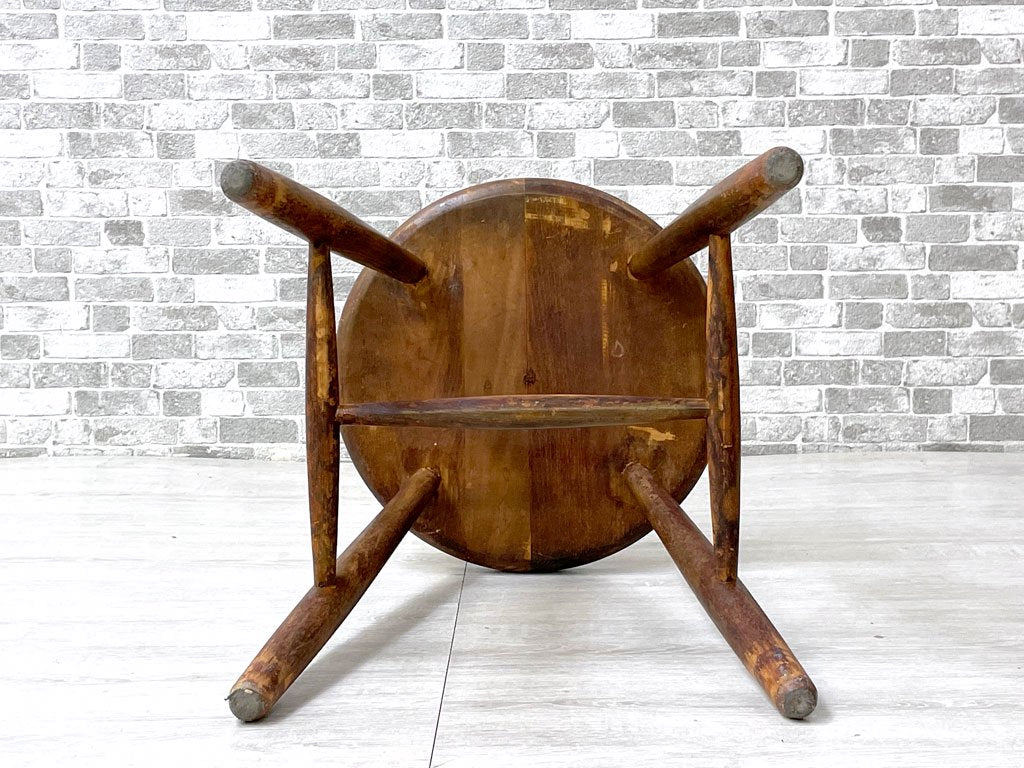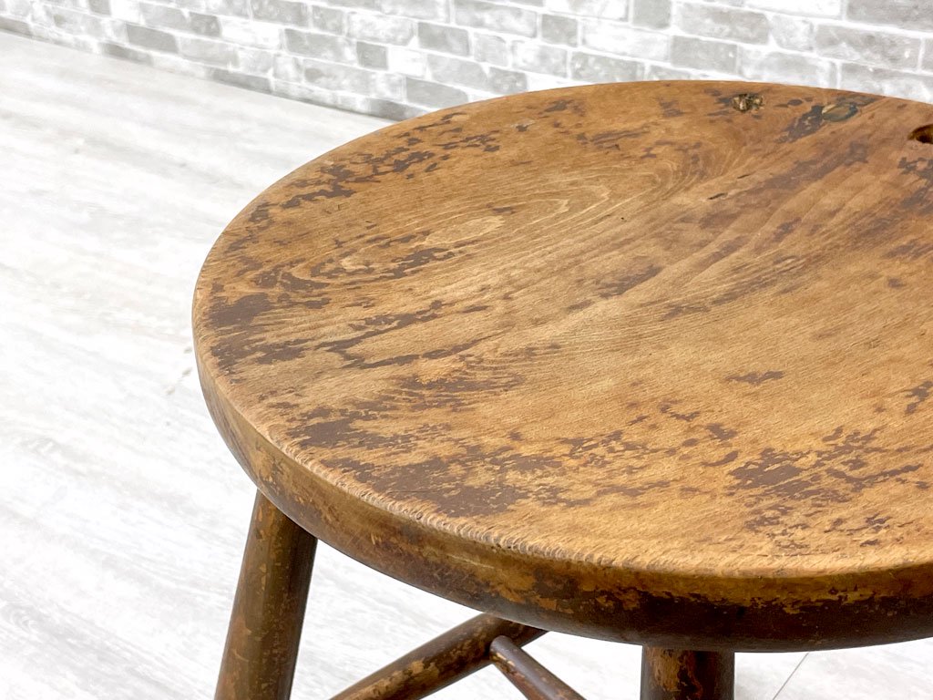 経年により味わいを増した日本の古いリメイクスツール。元はスポークバックチェアだったものですが、背もたれを取り外しスツールとして生まれ変わった一脚です。