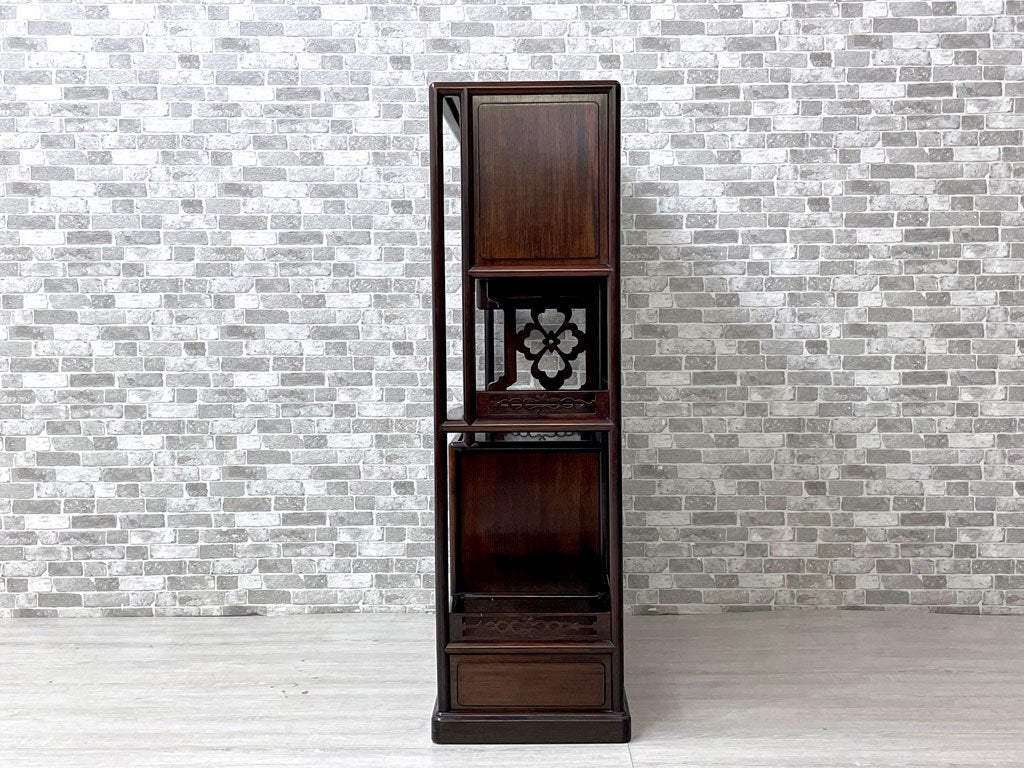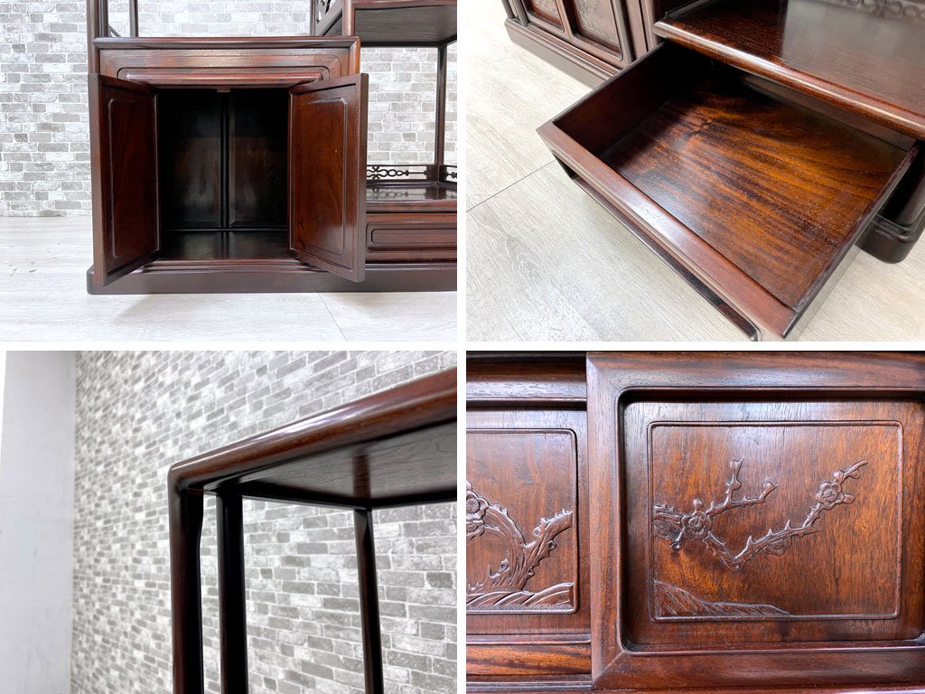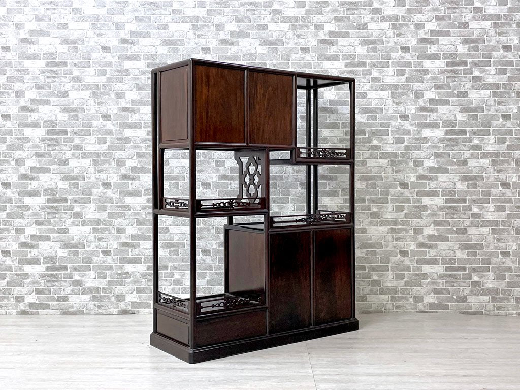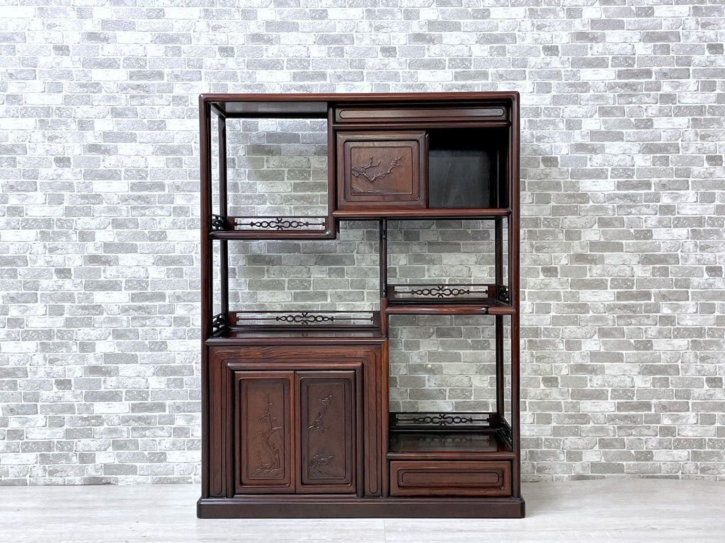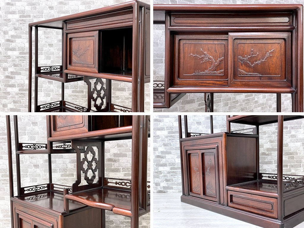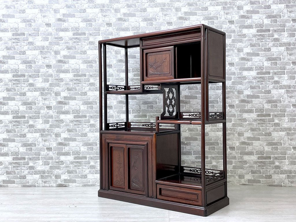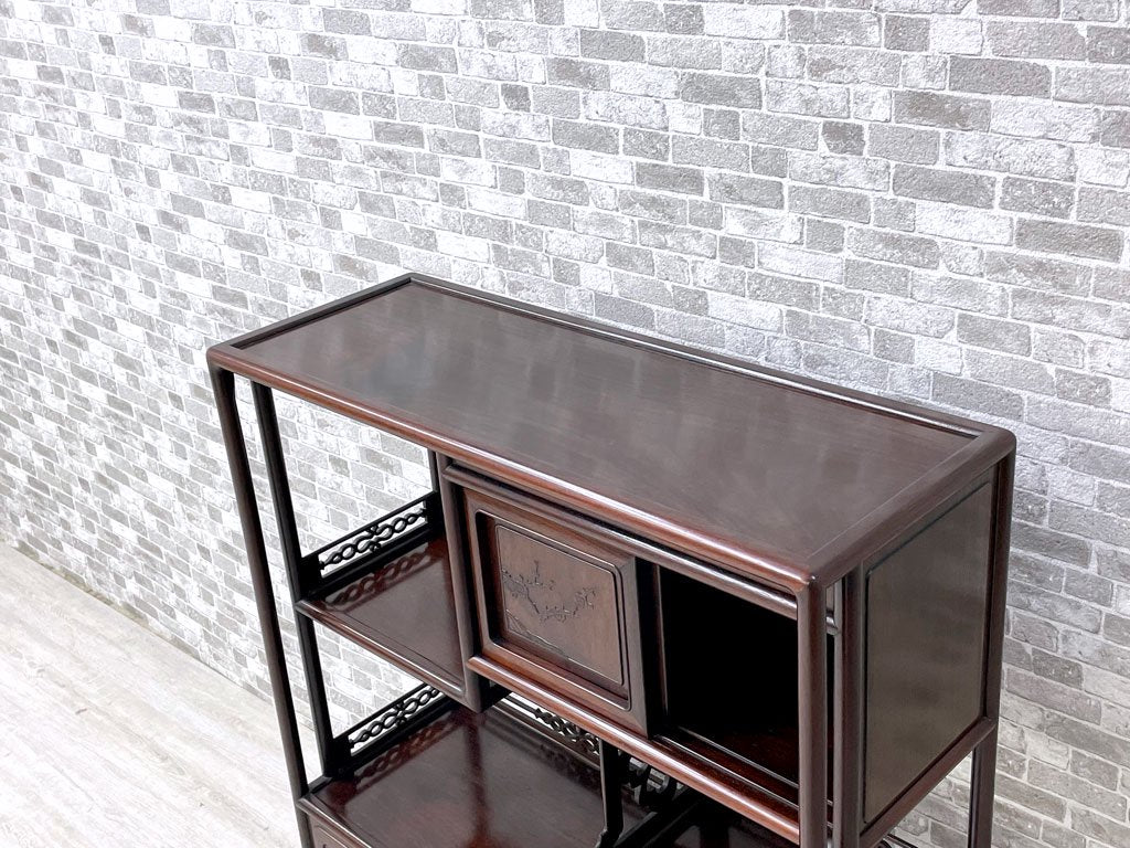 唐木家具 茶棚 違い棚 飾り棚 オープンシェルフ 飾り彫り 伝統工芸 銘木家具 ●