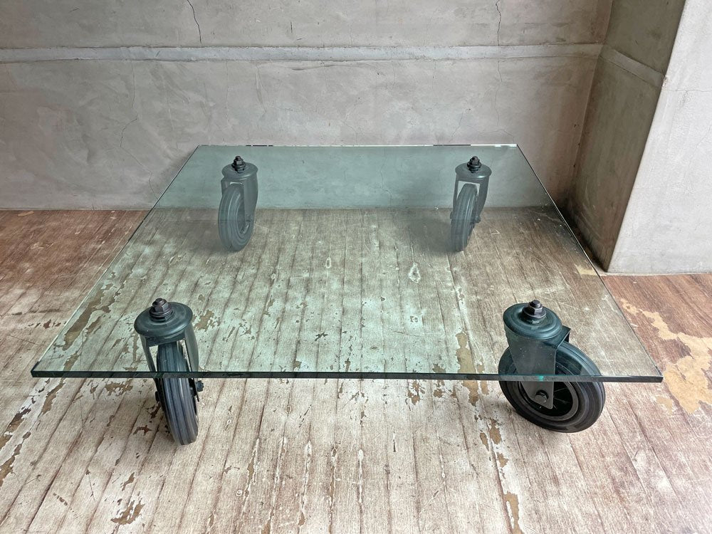 フォンタナアルテ FontanaArte コンルオーテ CON RUOTE ガラスローテーブル スクエア ガエ・アウレンティ カッシーナIXC.取扱 ♪