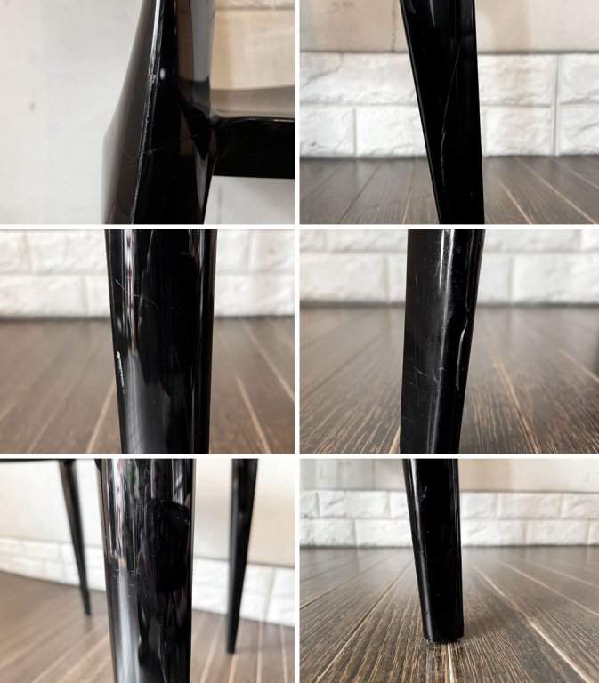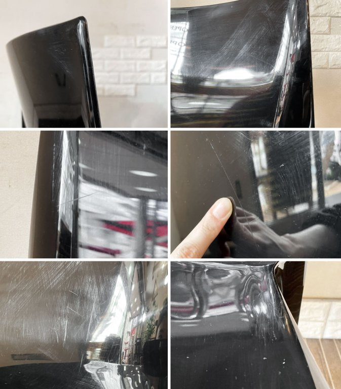 全体にやや目立つ線傷や縁の削れが見受けられるとともに、使用に伴う擦れや傷、取り切れない汚れ等が確認できます。なお、ご使用に問題となるがたつきやぐらつきなどはございません。今後も安心して実用頂けるコンディションを保っております。