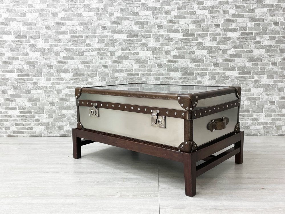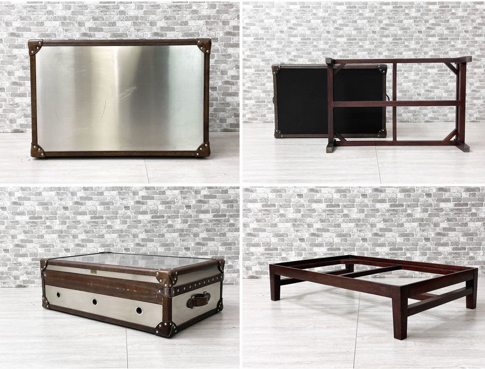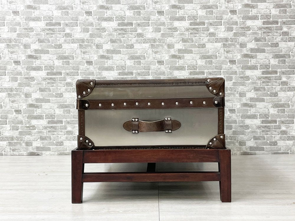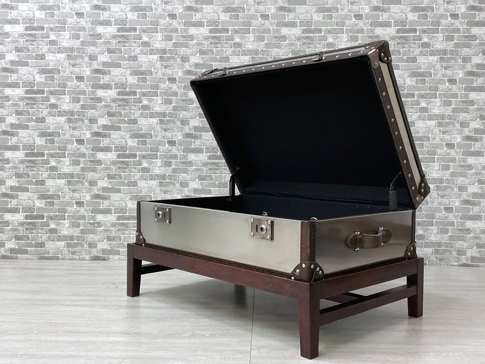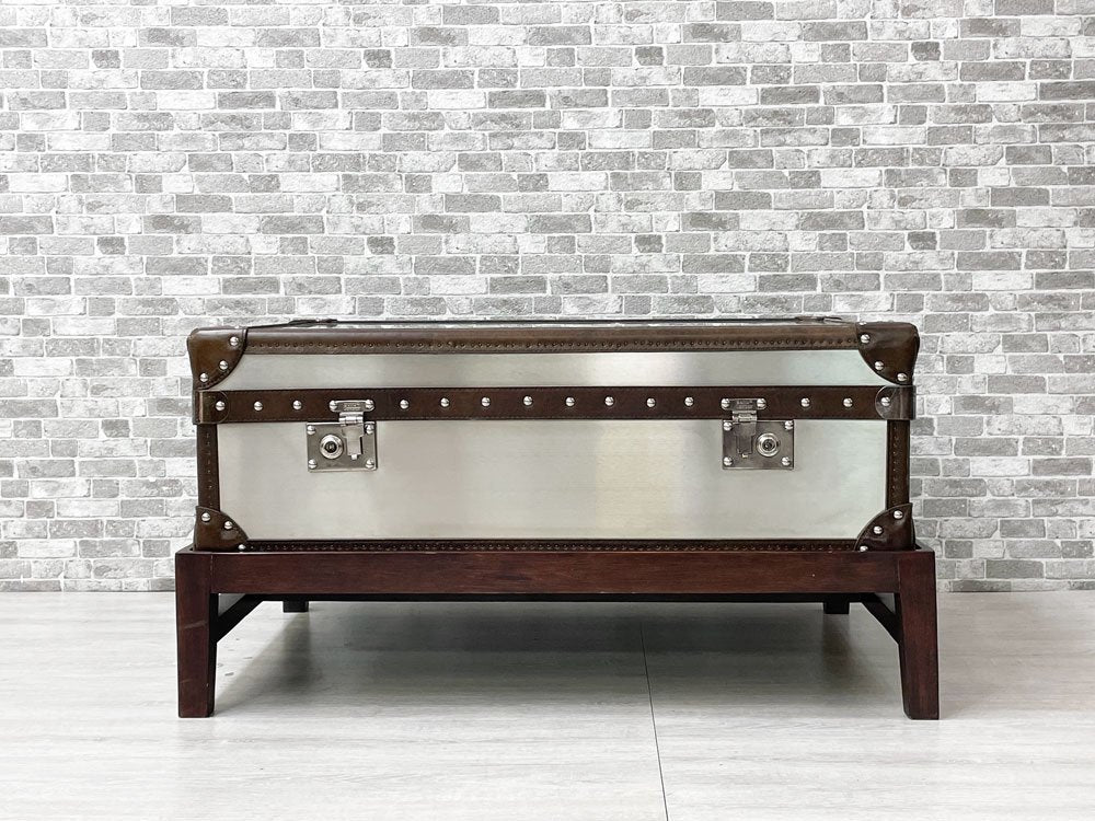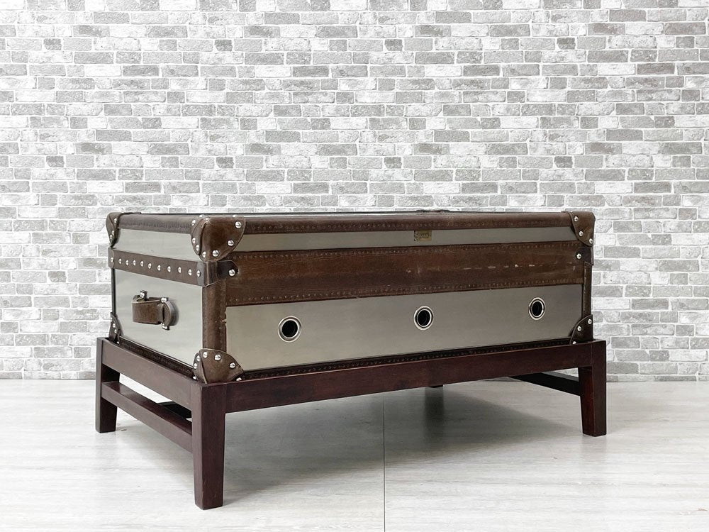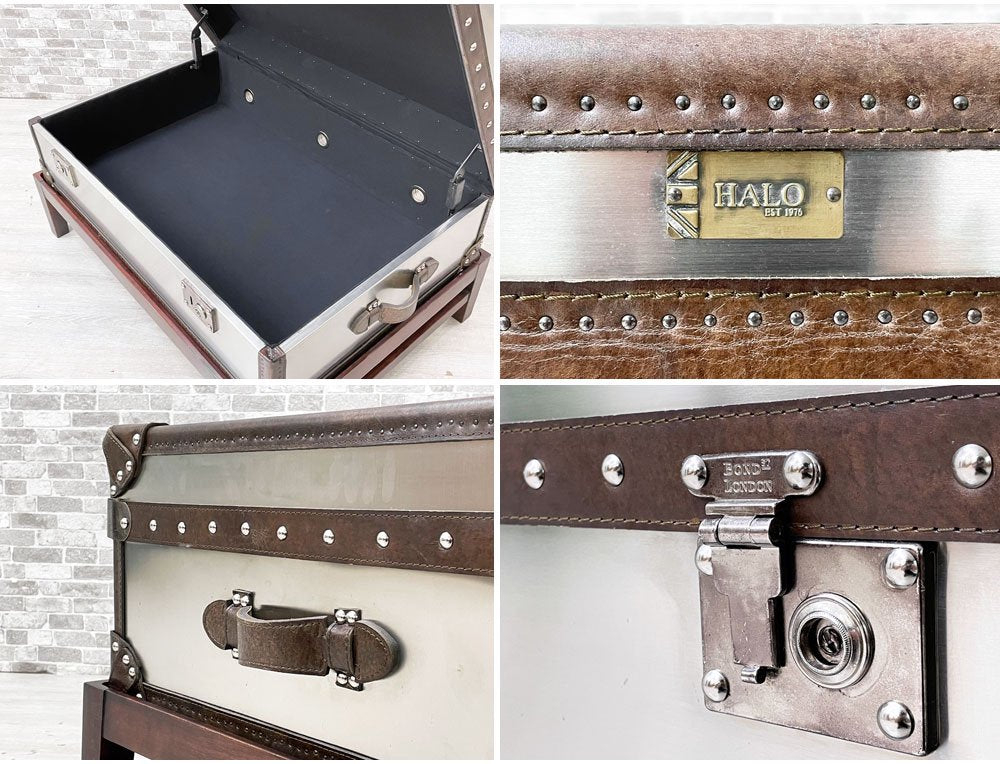 ハロ HALO ワトソンミディアムトランク WATSON MEDIUM TRUNK トランクスタンド付き ブラッシュドスチール 本革 リビングテーブル 英国 合計定価:157,300円 ●