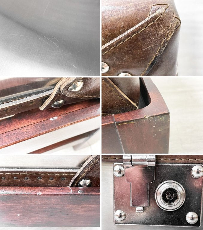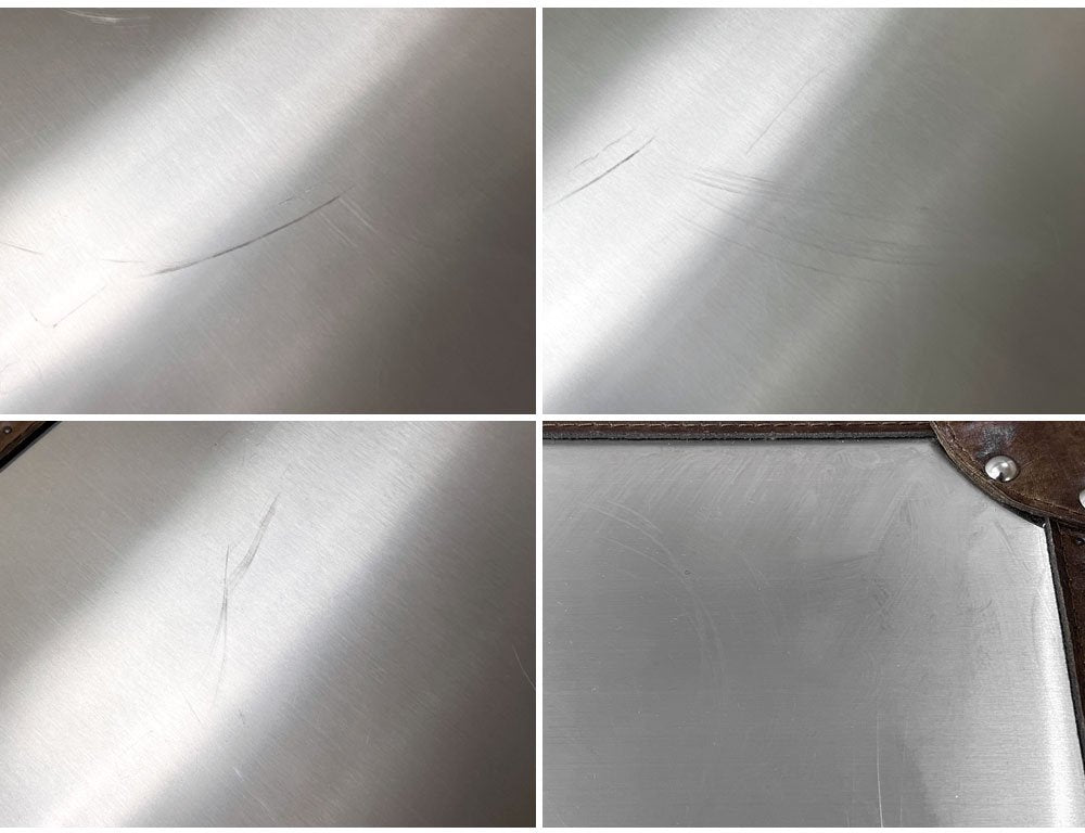 使用に伴う擦れや傷、天板のスクラッチ傷、金属部分のくすみやレザー部分の擦れなど多少の使用感はございますが、大きく美観を損ねる程では無く、機能を損なうような大きなダメージなどもございません。